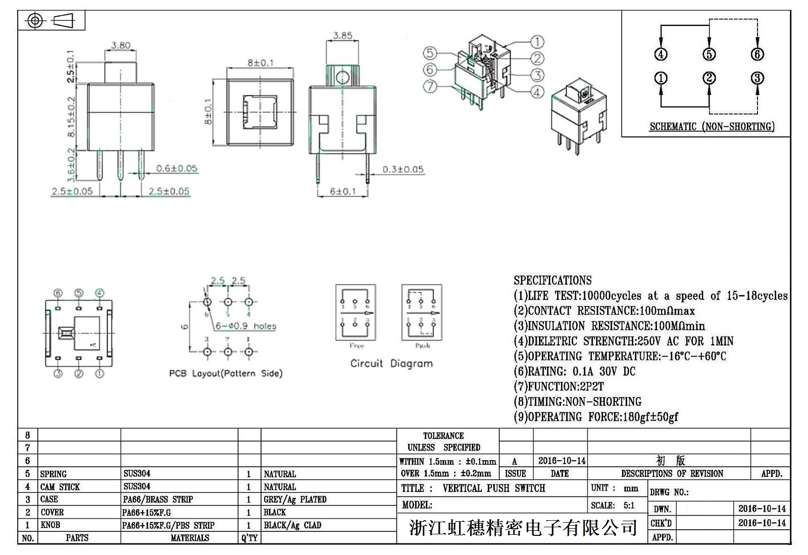 1. 额定负荷: DC 30V 50V 0.3A 0.5A
