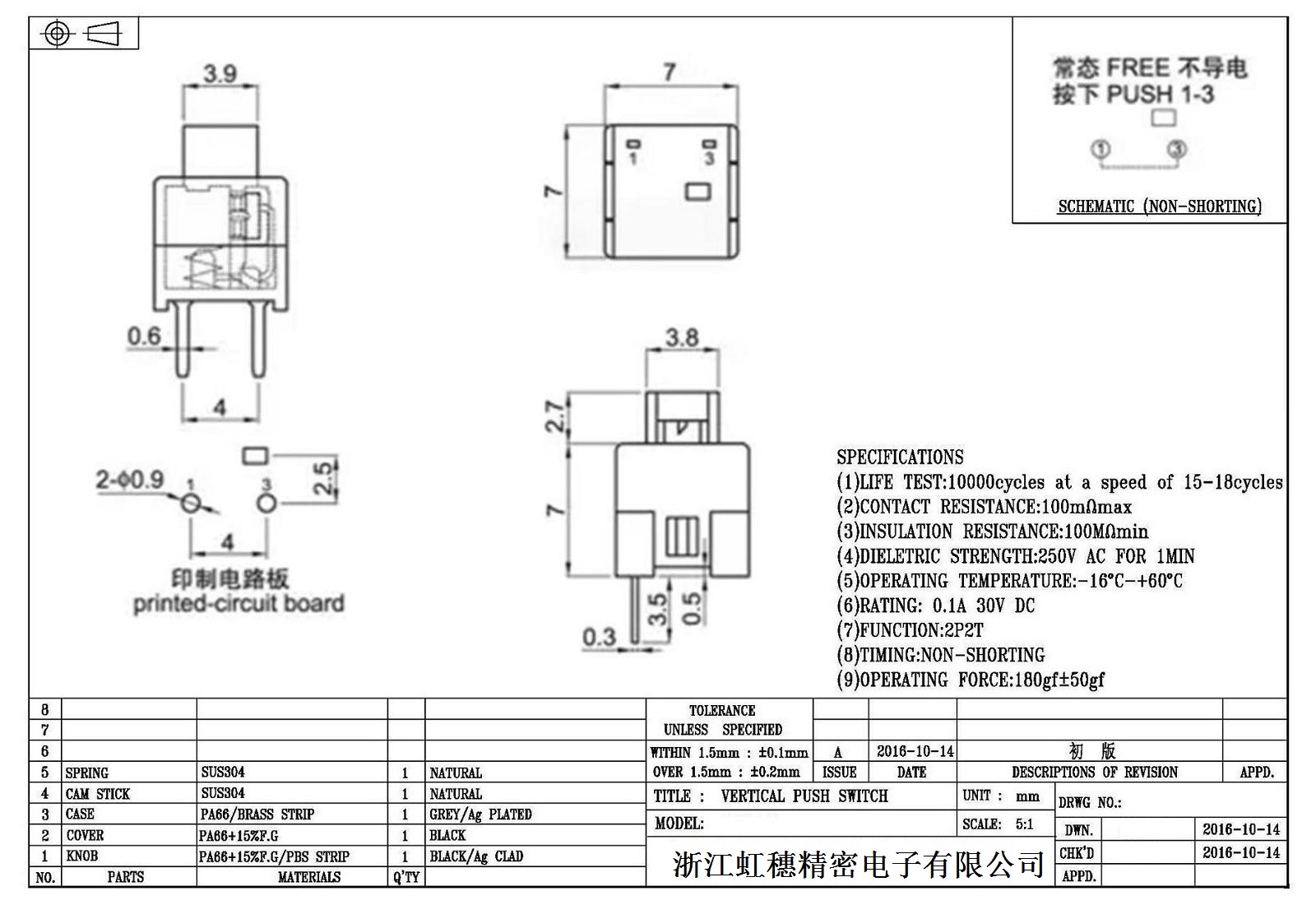 1. 额定负荷DC 30V  50V  0.3A  0.5A