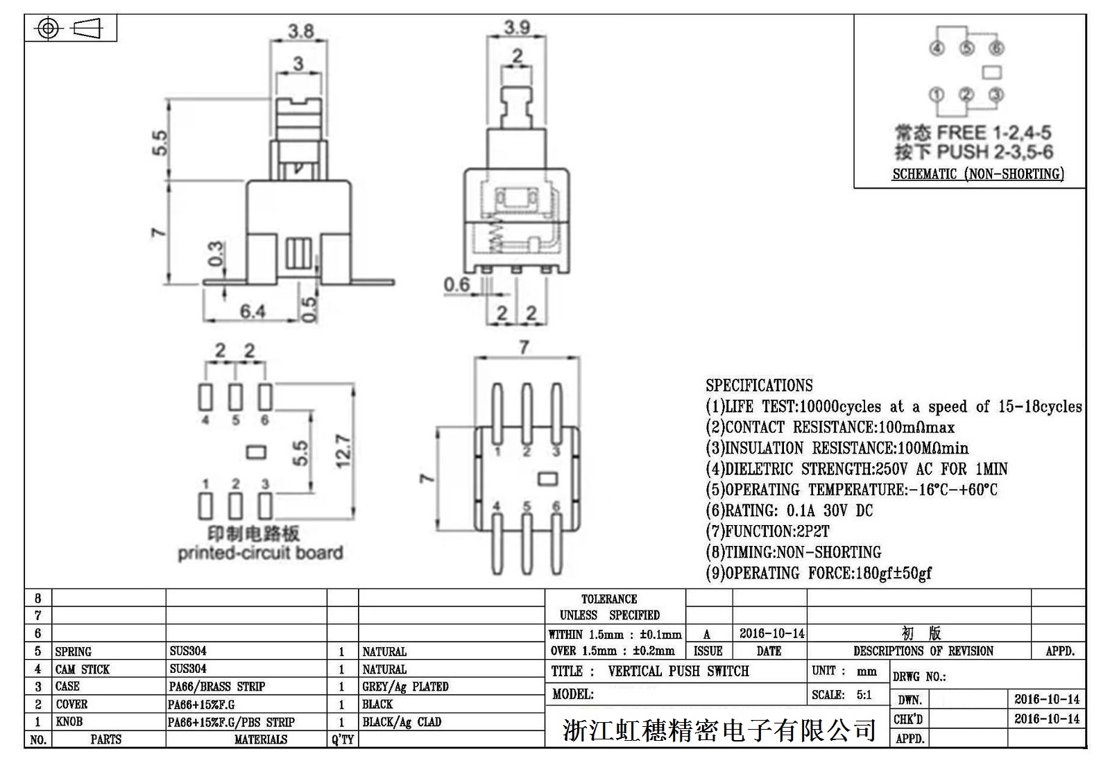 自锁开关技术参数:
