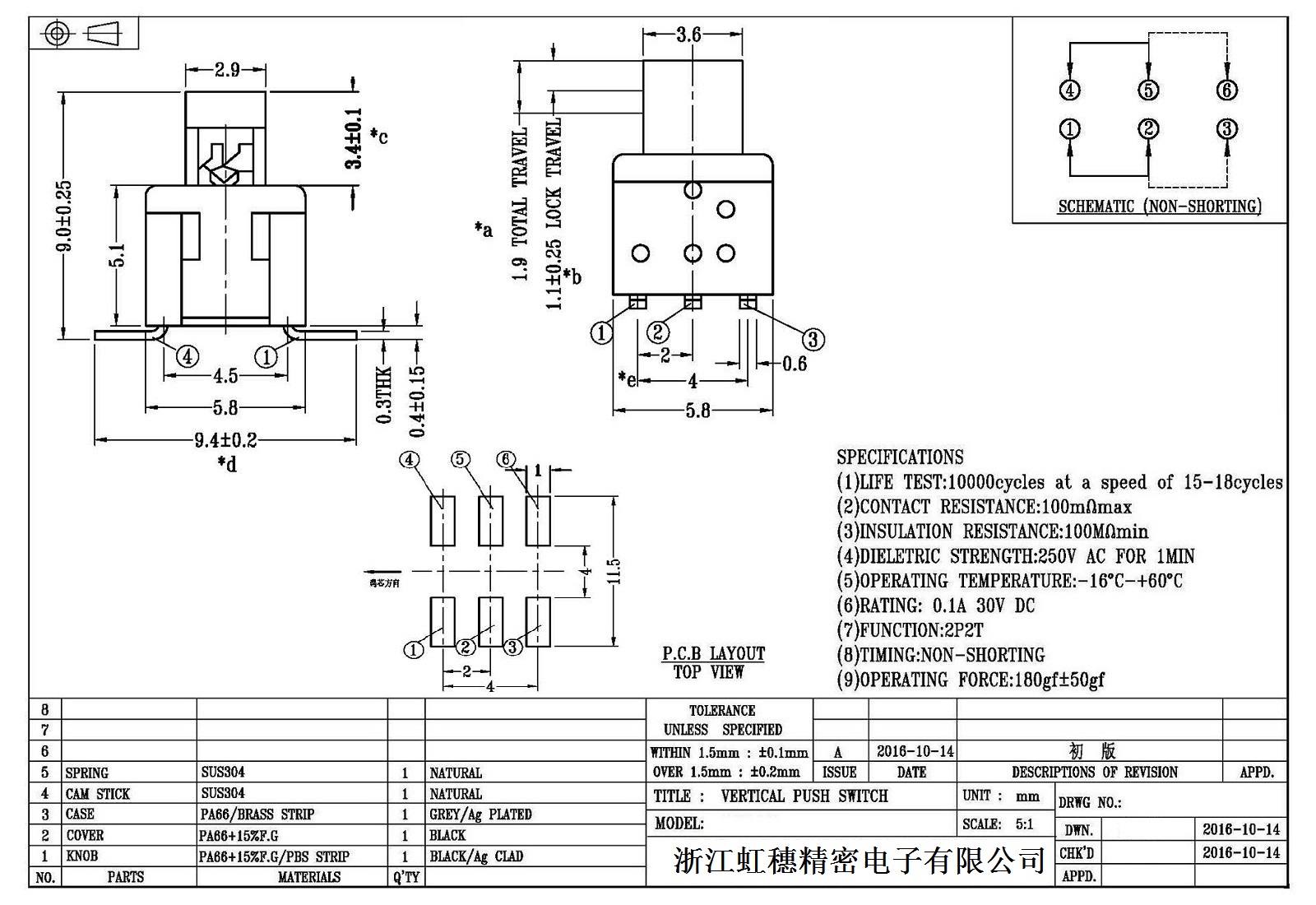 1. 额定负荷DC 30V  50V  0.3A  0.5A