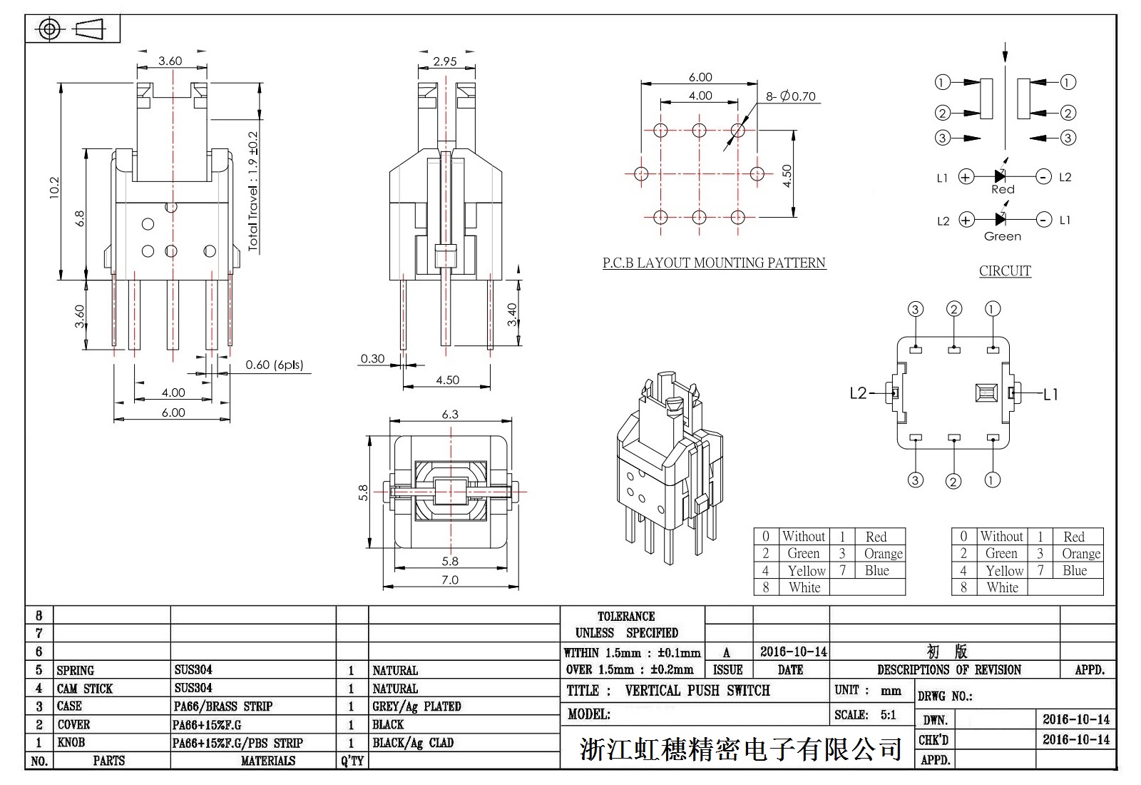自锁开关技术参数: