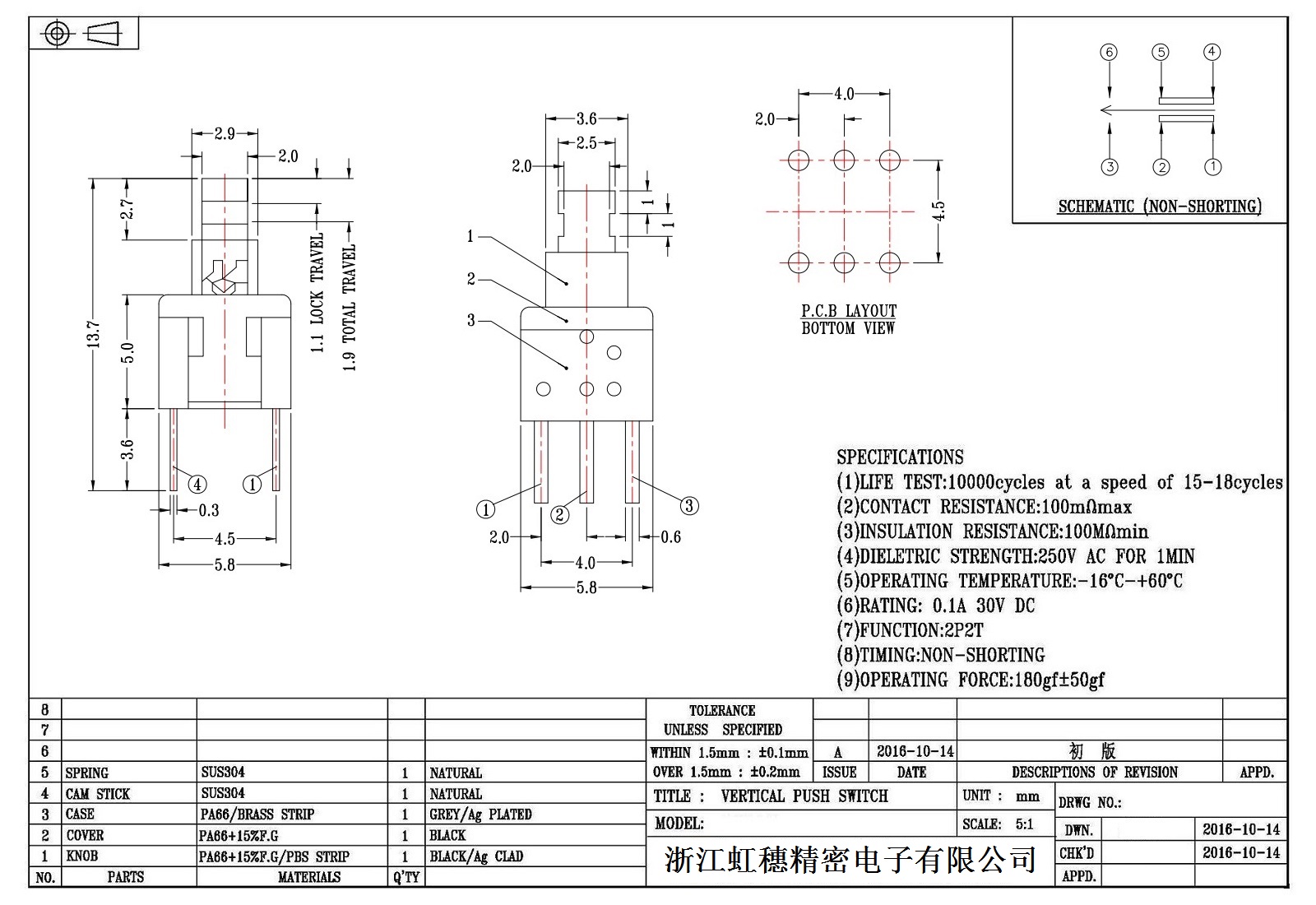 自锁开关技术参数: