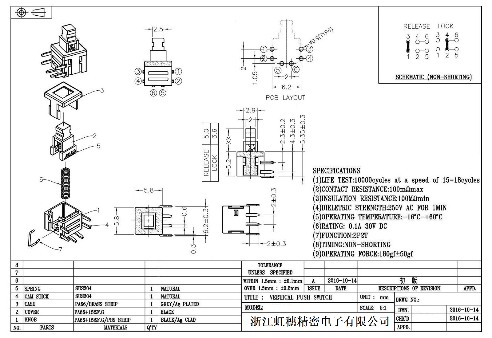 1. 额定负荷: DC 30V 50V 0.3A 0.5A