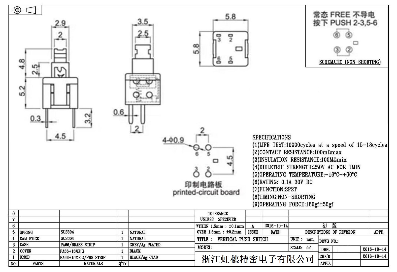 1. 额定负荷: DC 30V 50V 0.3A 0.5A