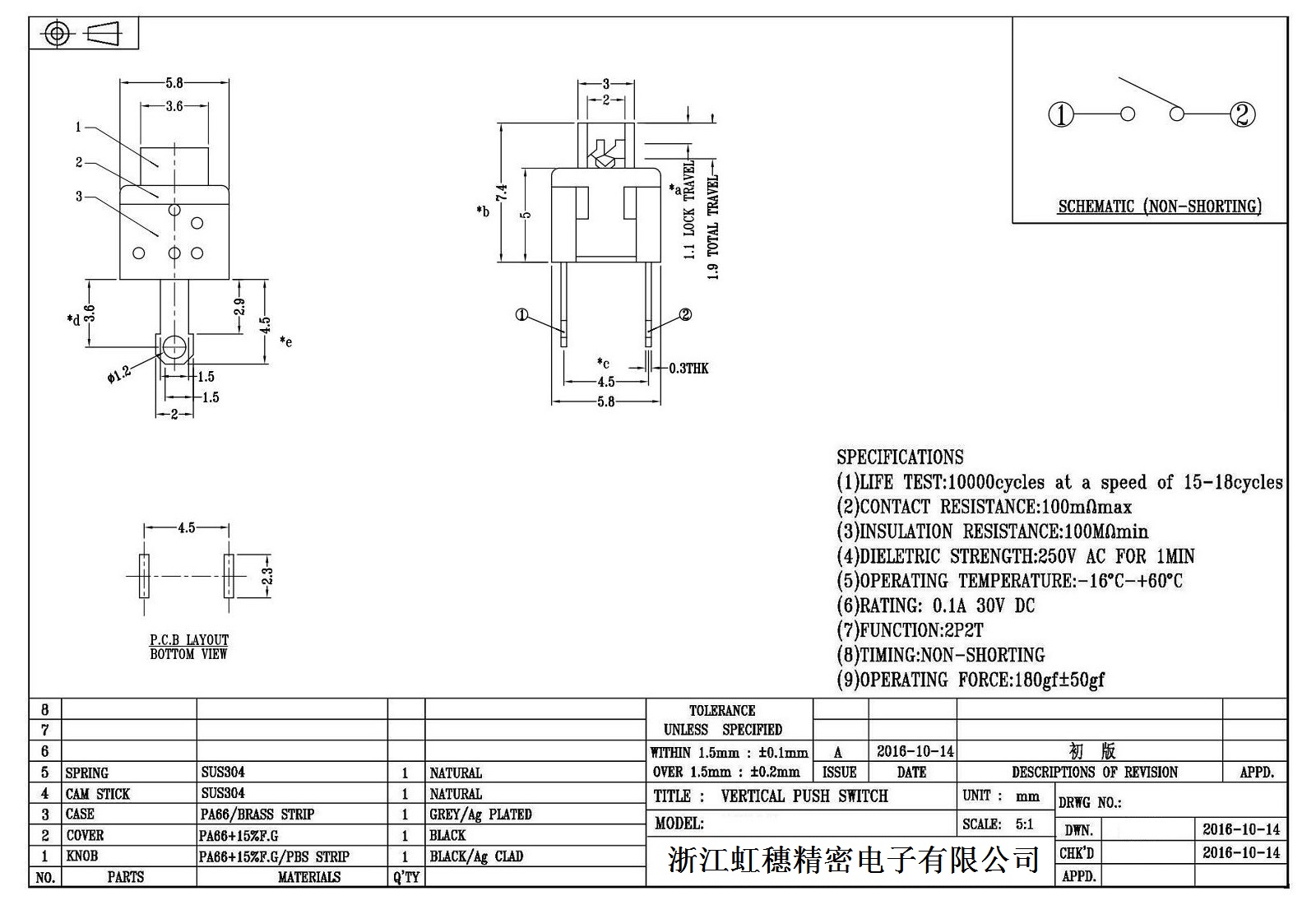 自锁开关技术参数: