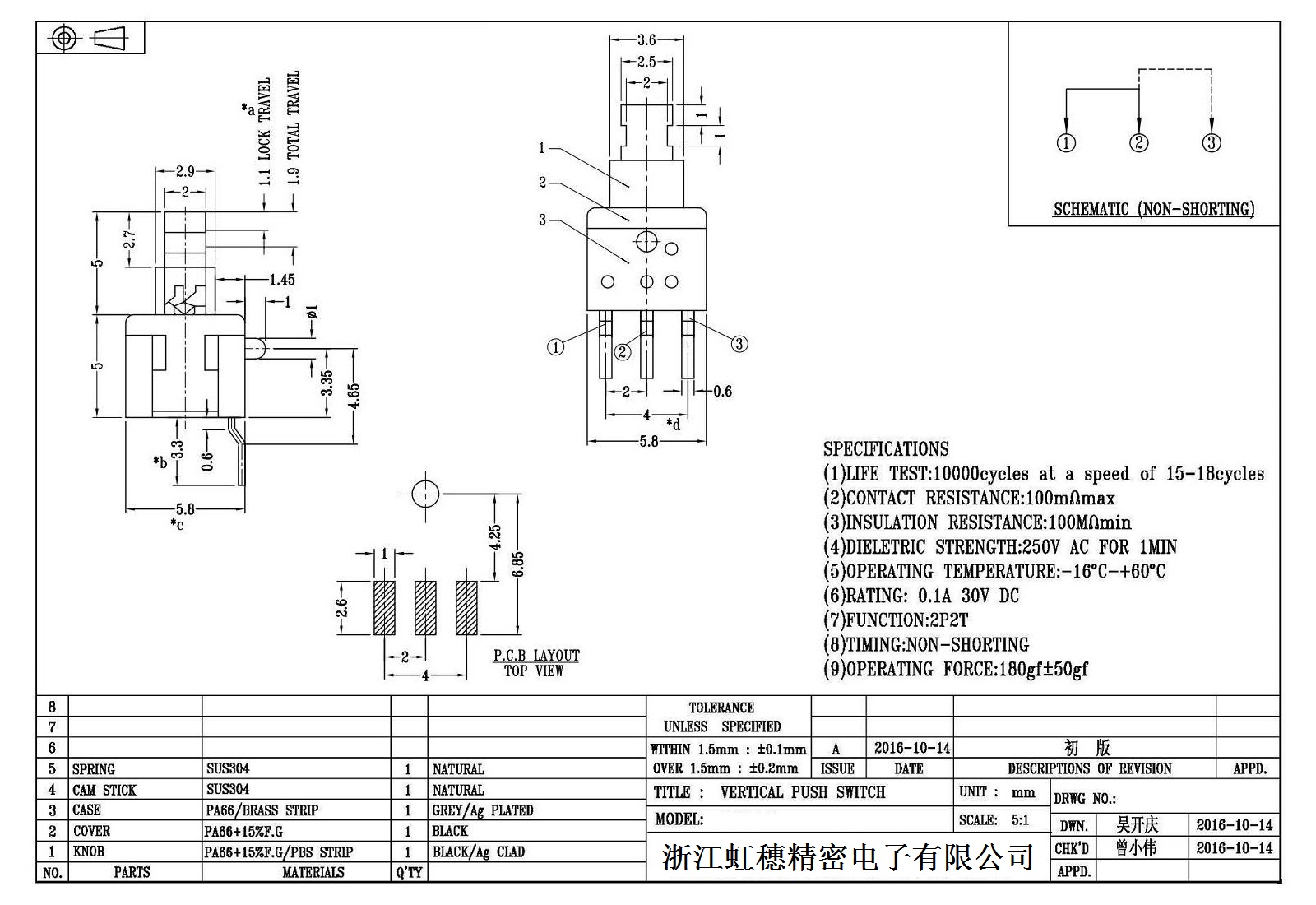1. 额定负荷DC 30V  50V  0.3A  0.5A