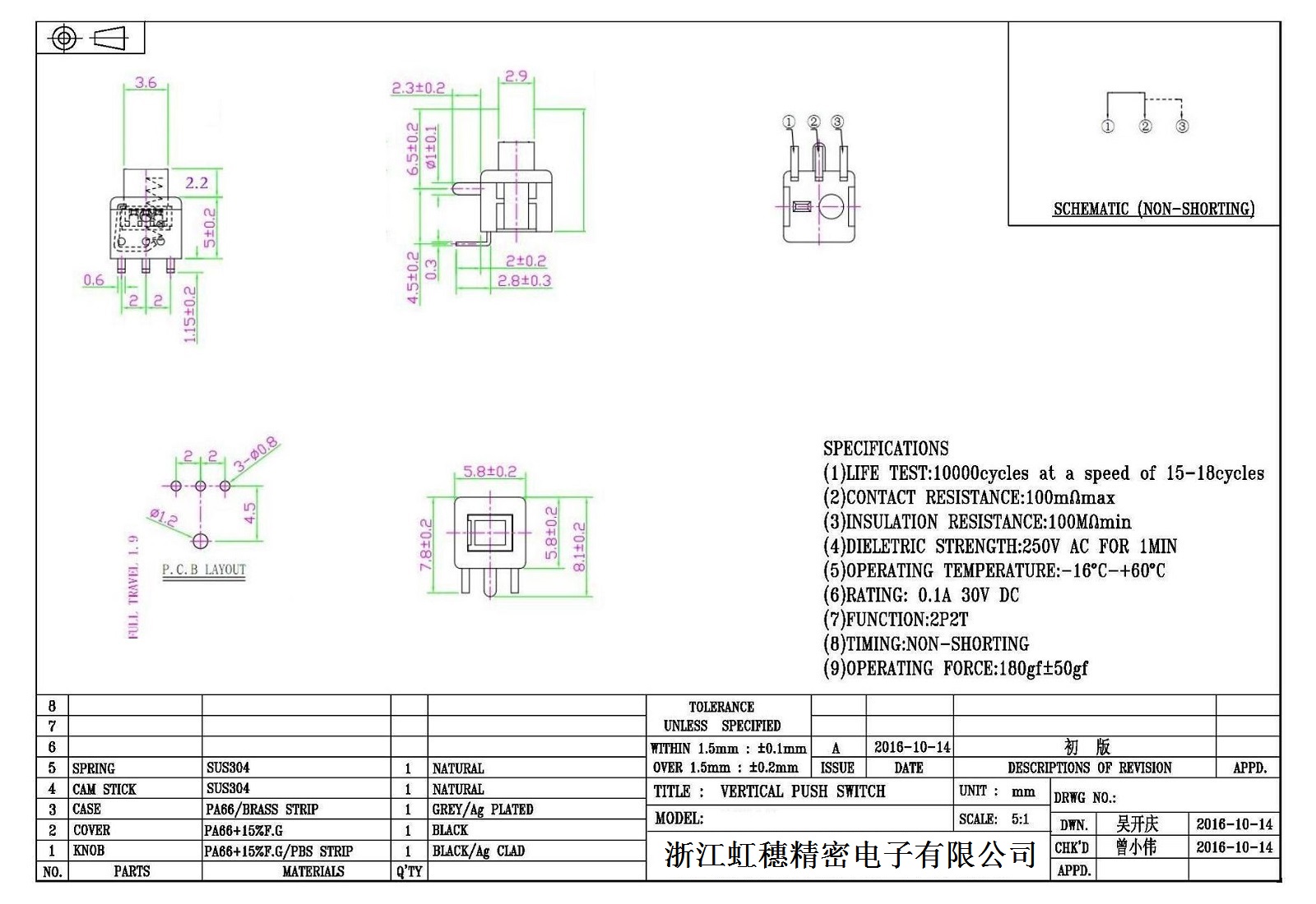 1. 额定负荷DC 30V  50V  0.3A  0.5A