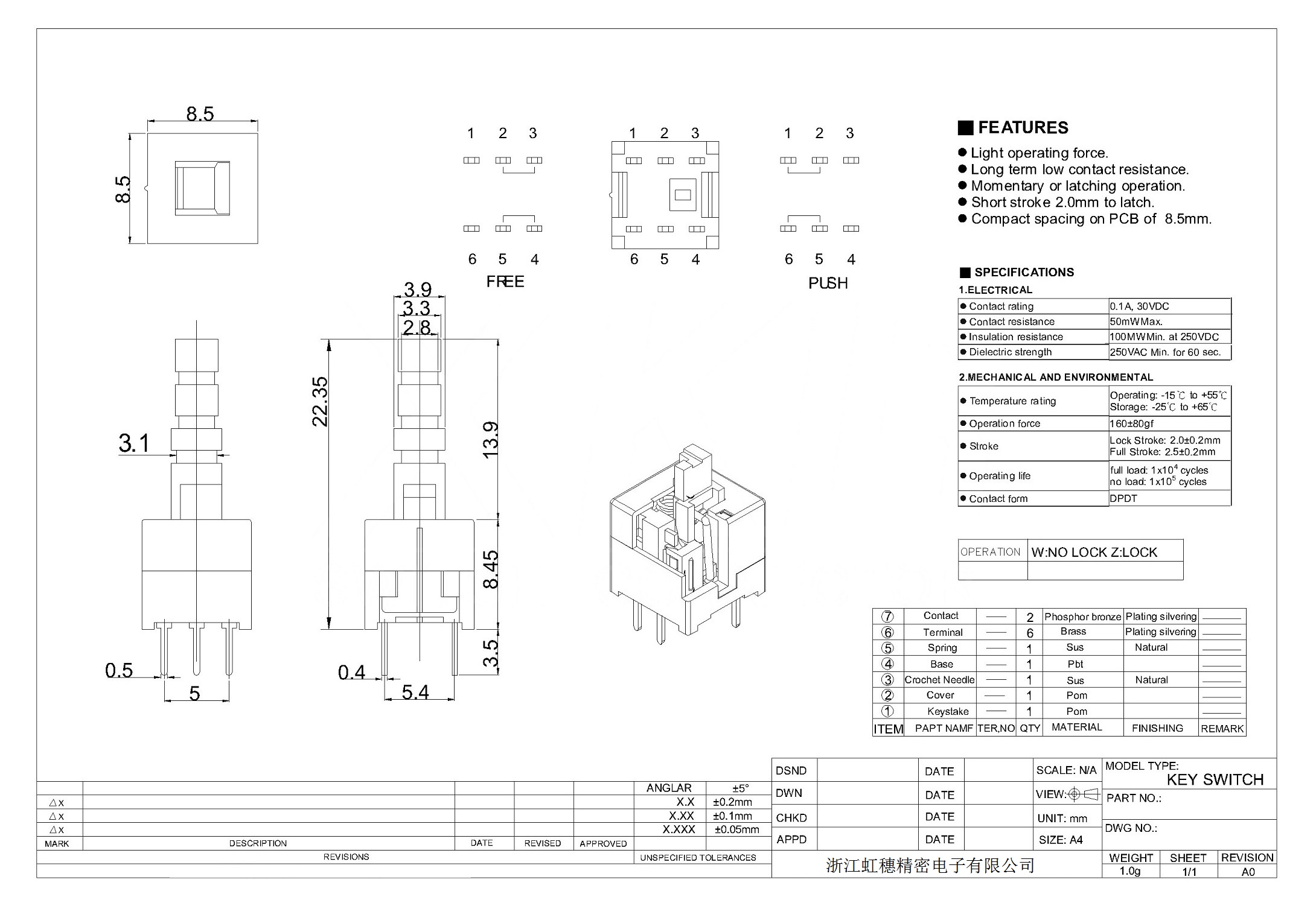 1. 额定负荷: DC 30V  50V  0.3A  0.5A