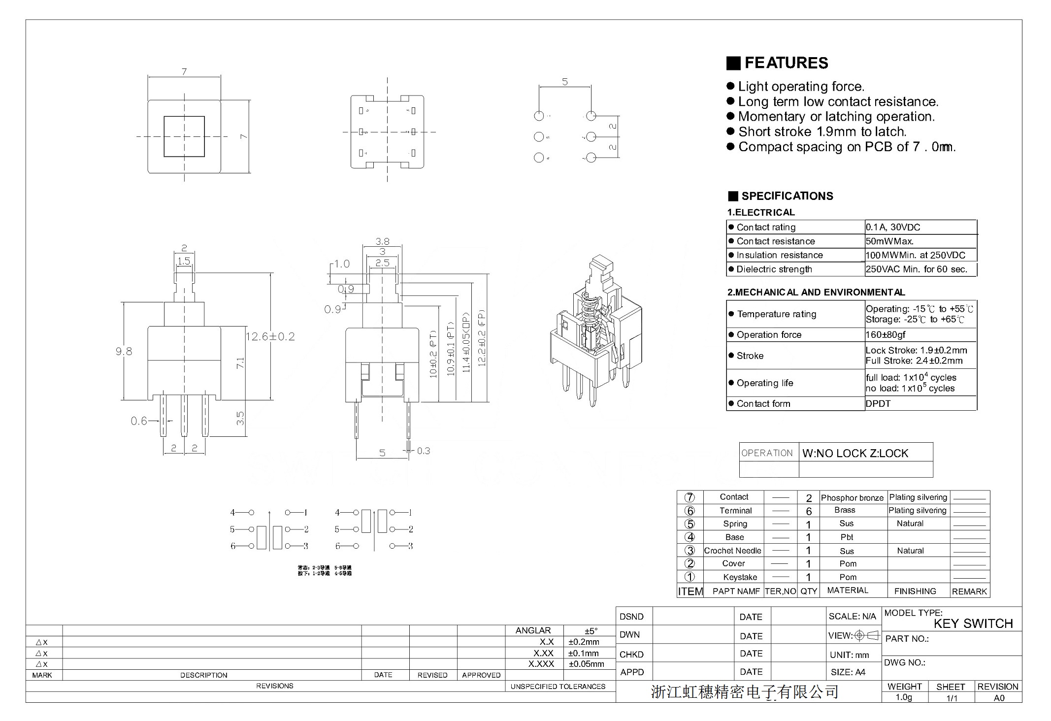 1. 额定负荷: DC 30V 50V 0.3A 0.5A