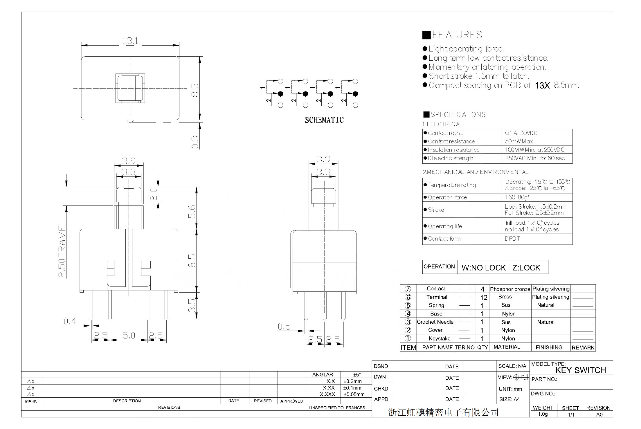 1. 额定负荷: DC 30V 50V 0.3A 0.5A