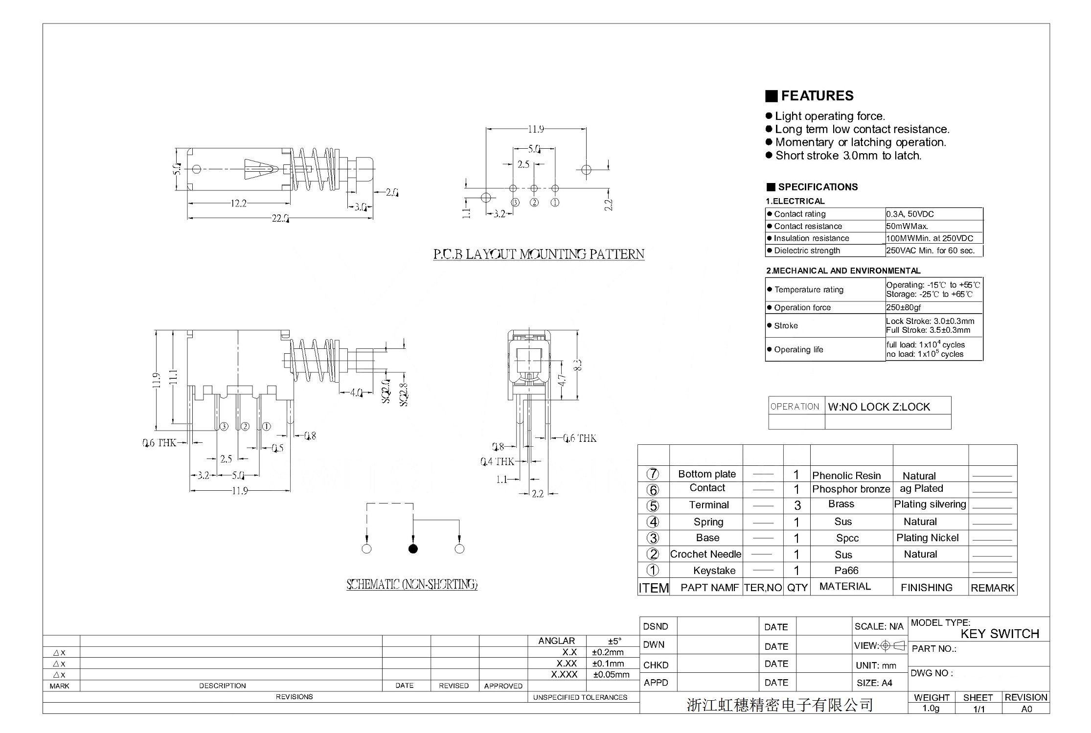 1. 额定负荷: DC 30V 50V 0.3A 0.5A