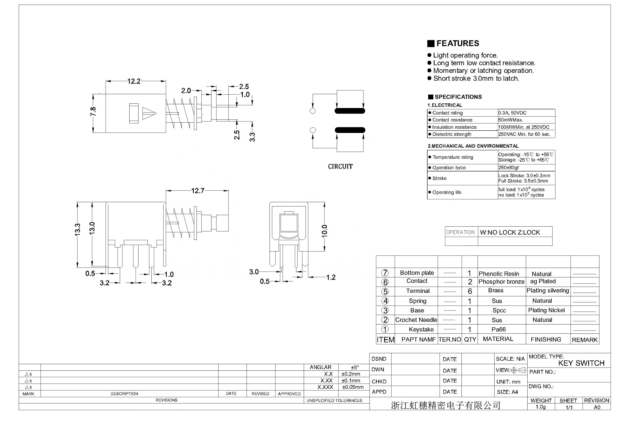 1. 额定负荷: DC 30V  50V  0.3A  0.5A