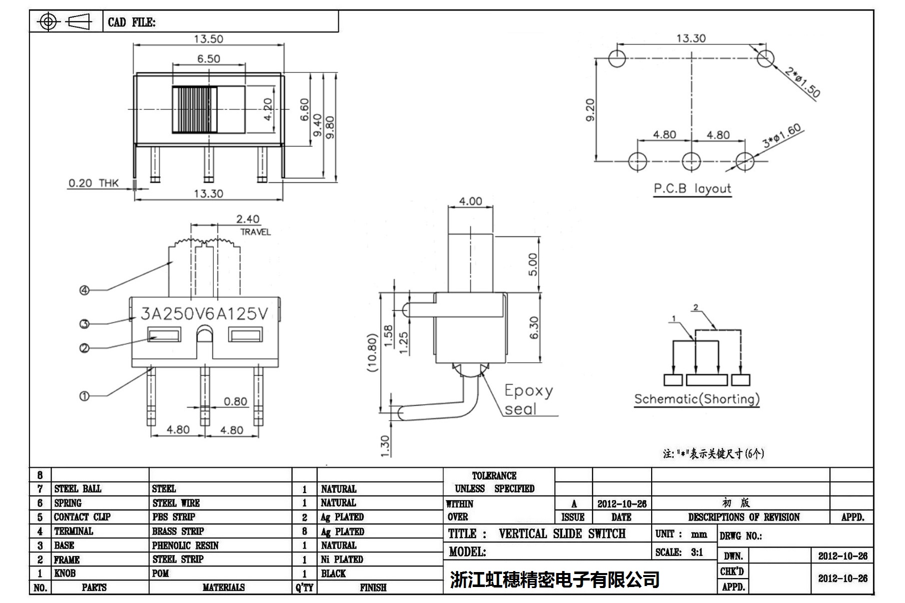 3. 绝缘阻抗: 100mΩ DC500V         4. 耐焊温度: 250±5°5s
