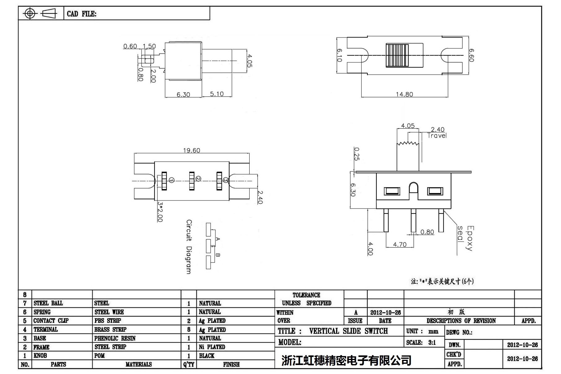 Technical parameters of high current slide switch: