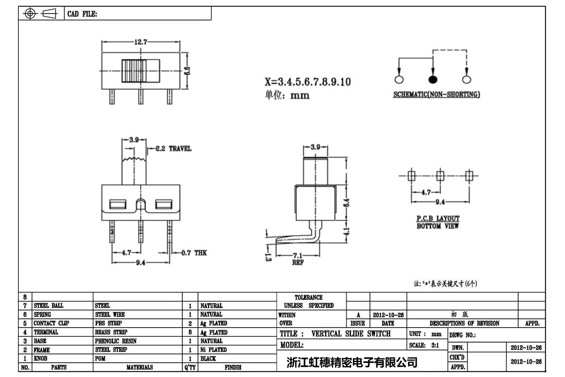 3. 绝缘阻抗: 100mΩ DC500V         4. 耐焊温度: 250±5°5s