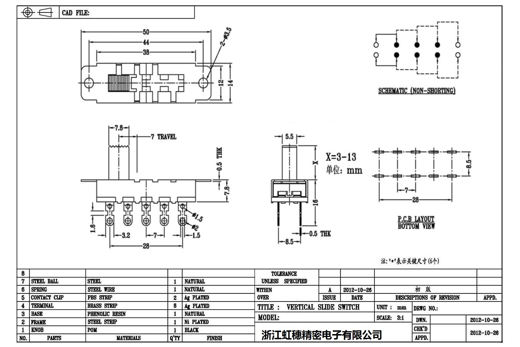 Technicalindicators of high-power Toggle switch/high-current Slide switch