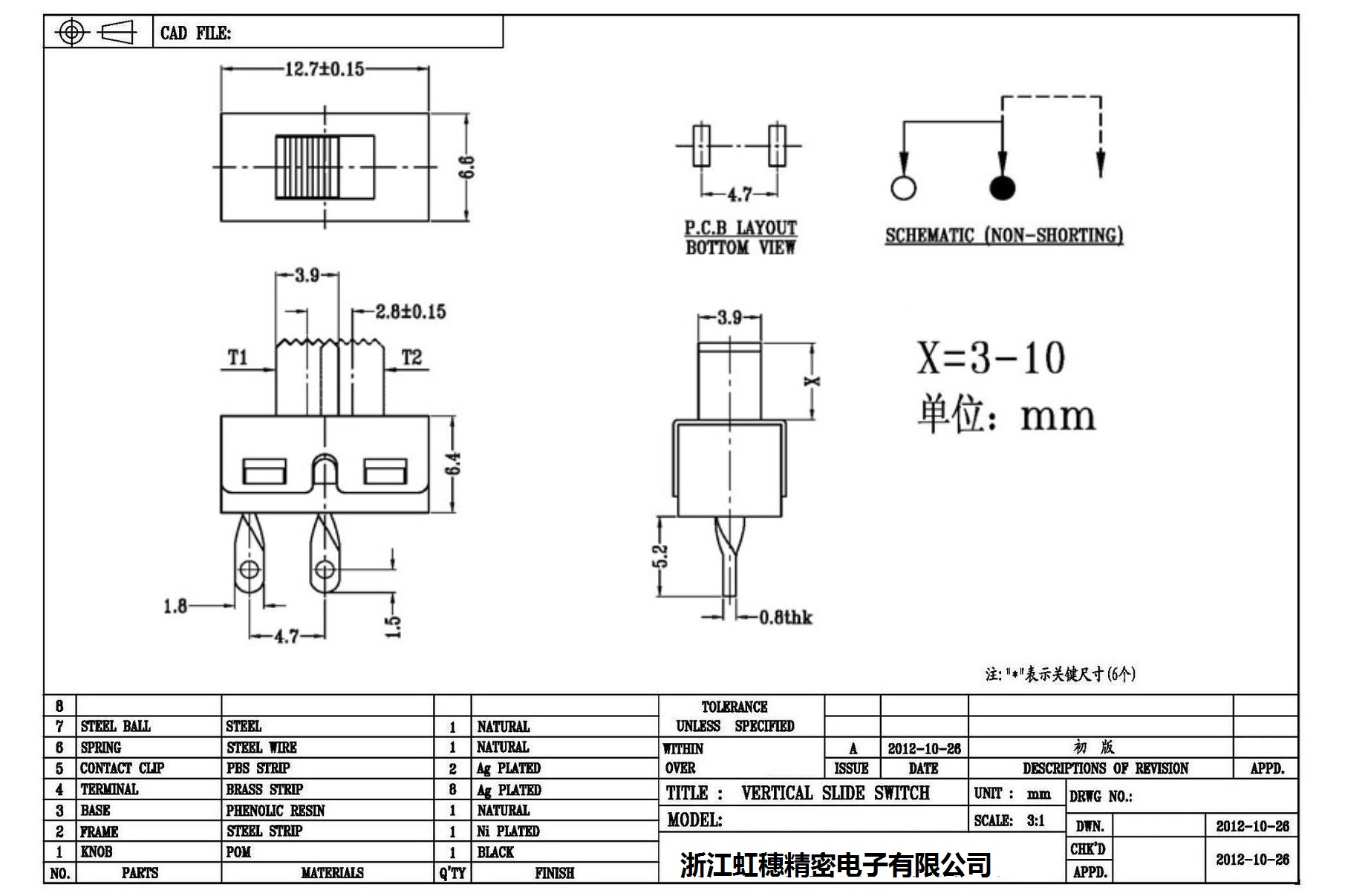 1. 额定负荷: AC 125V 250V  1A 3A 5A