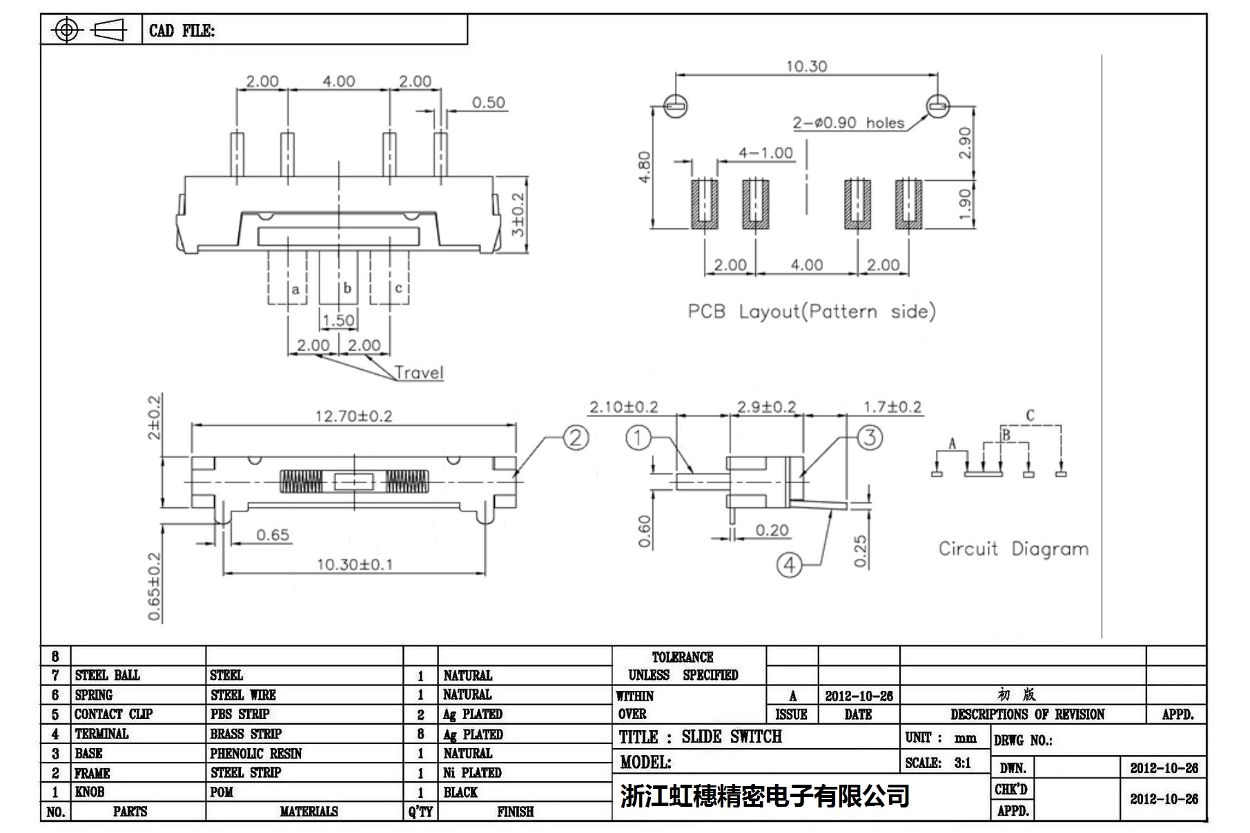 迷你型拨动开关技术指标