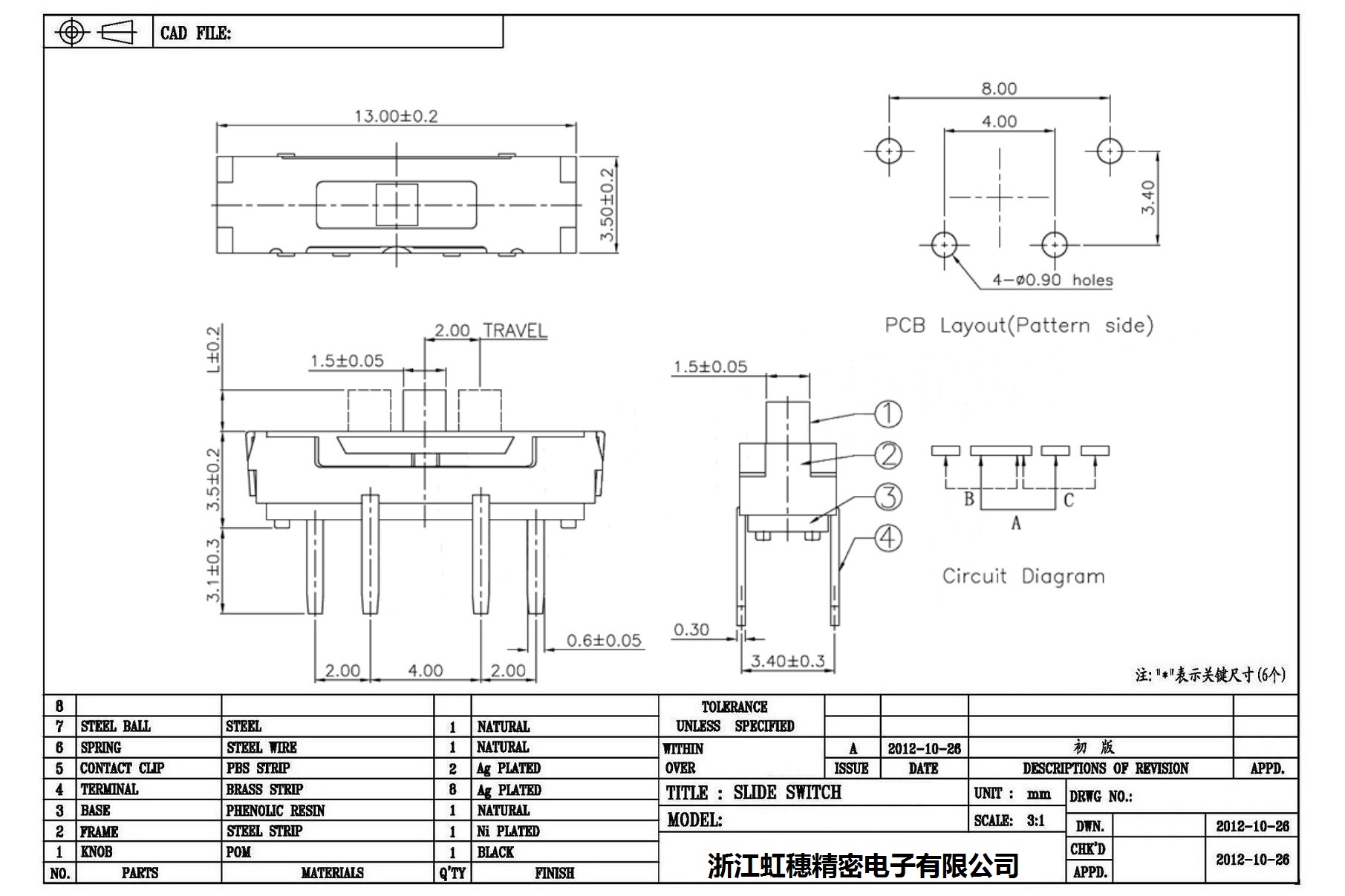 迷你型拨动开关技术指标