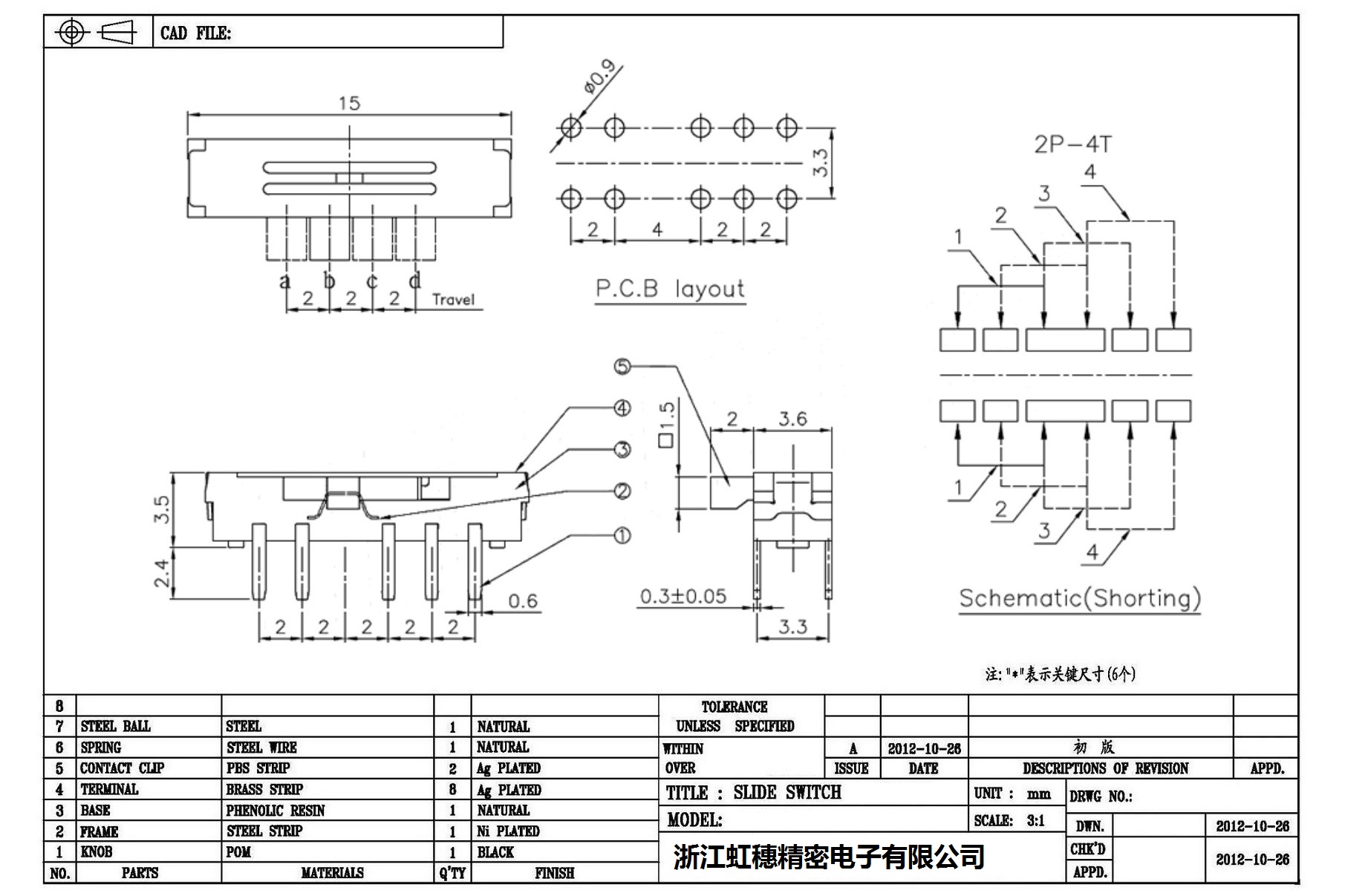 迷你型拨动开关技术指标