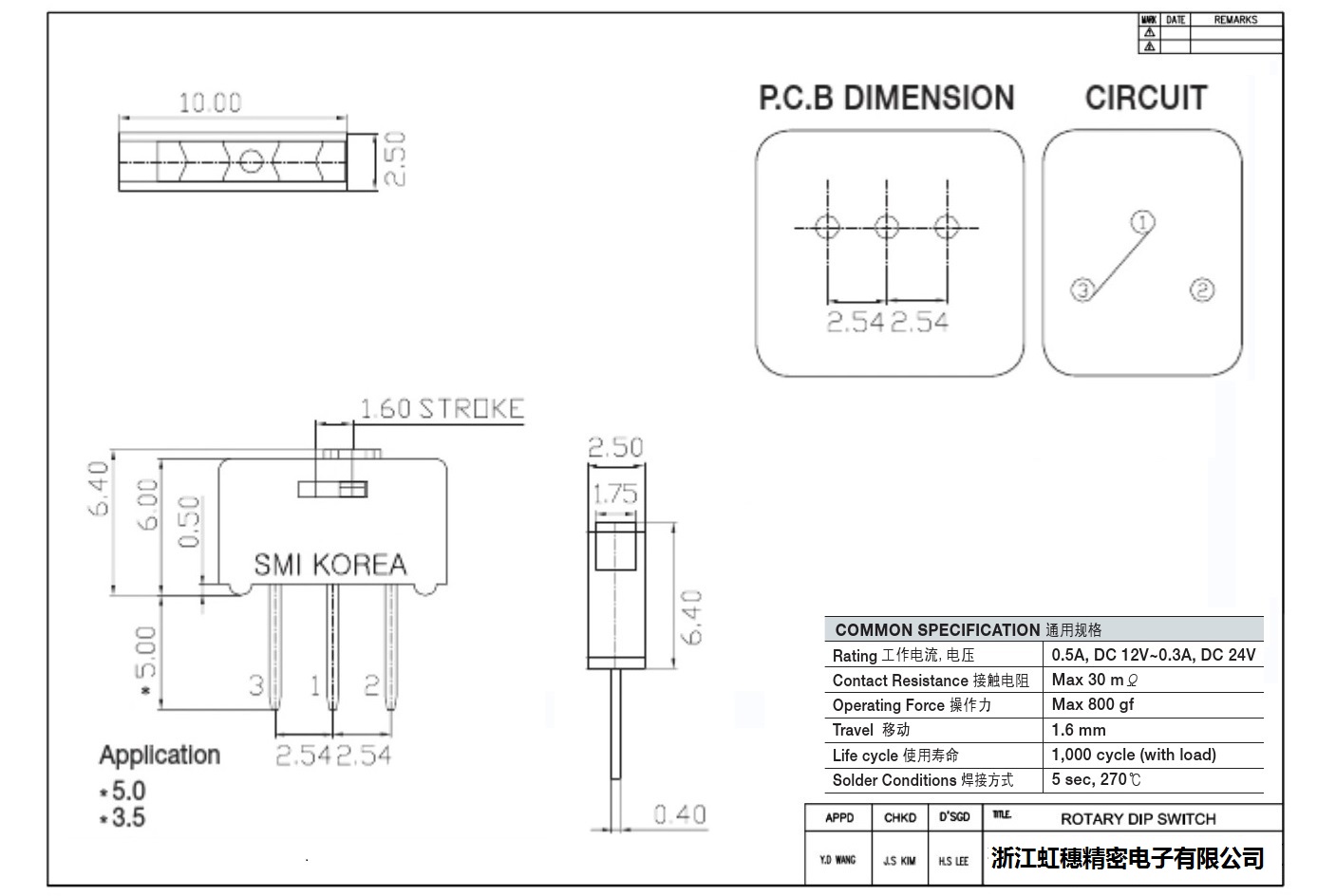 Mini Slide switch technical indicators / Micro Slide Switch Technical indicators