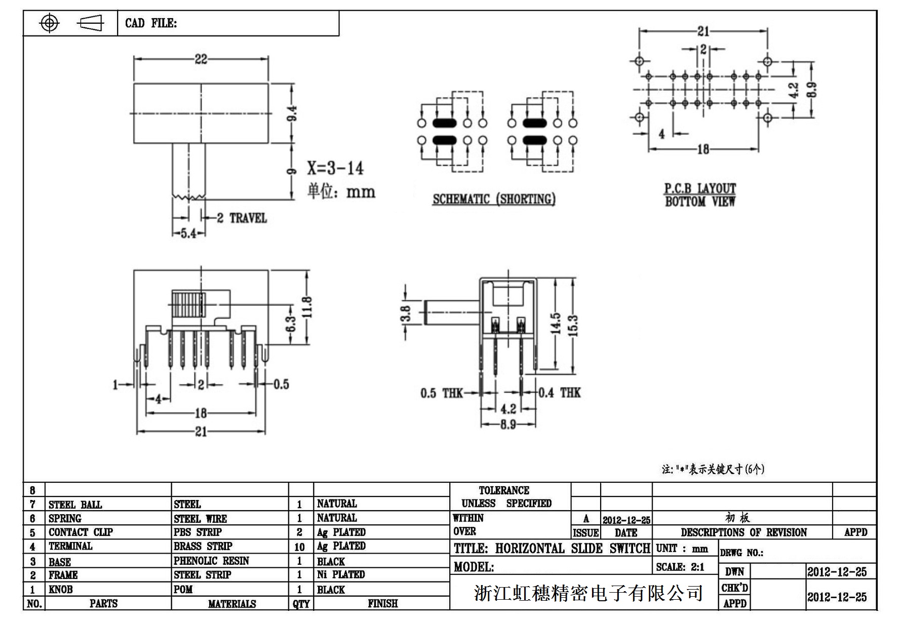 Horizontal toggle switch sidedial/horizontal slide switch technical indicators