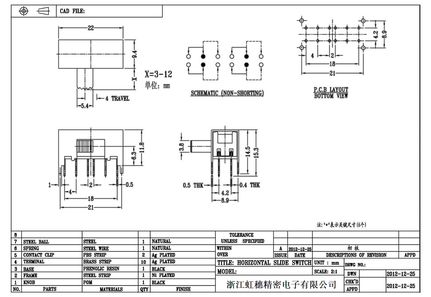 Horizontal toggle switch sidedial/horizontal slide switch technical indicators