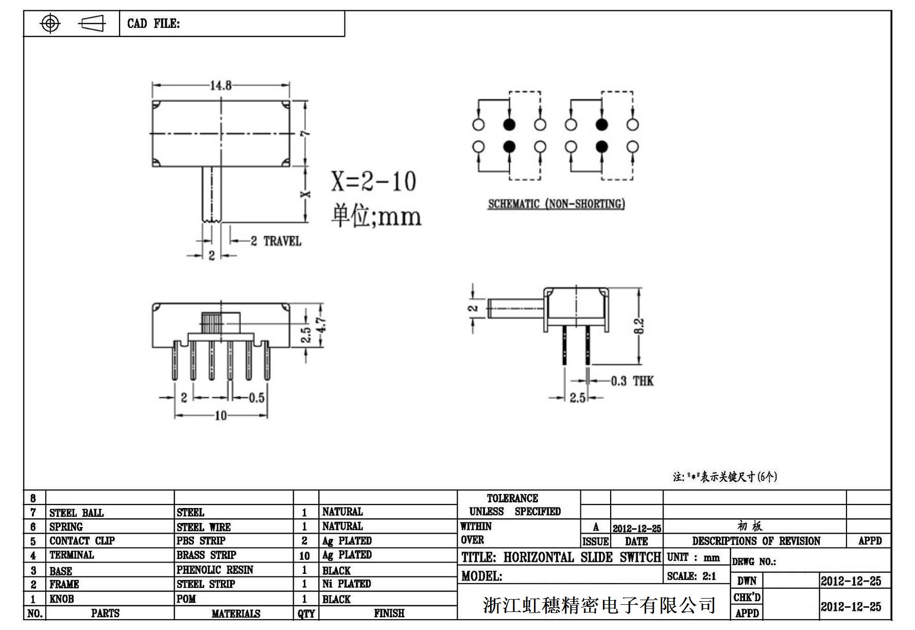 Horizontal toggle switch sidedial/horizontal slide switch technical indicators
