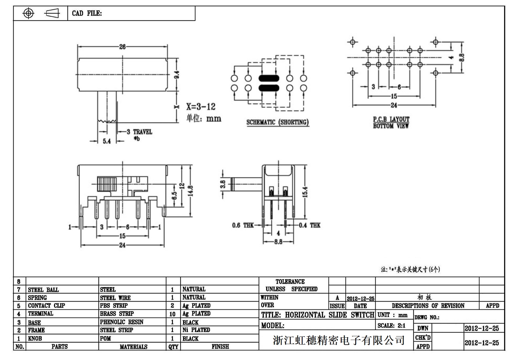 Horizontal toggle switch sidedial/horizontal slide switch technical indicators