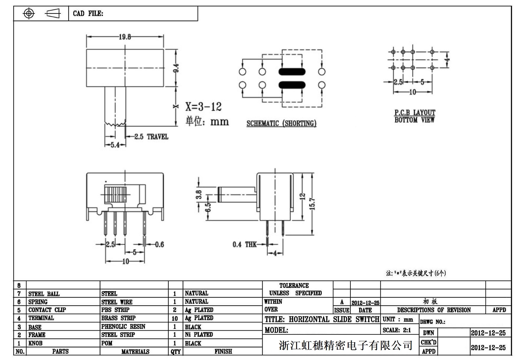 Horizontal toggle switch sidedial/horizontal slide switch technical indicators