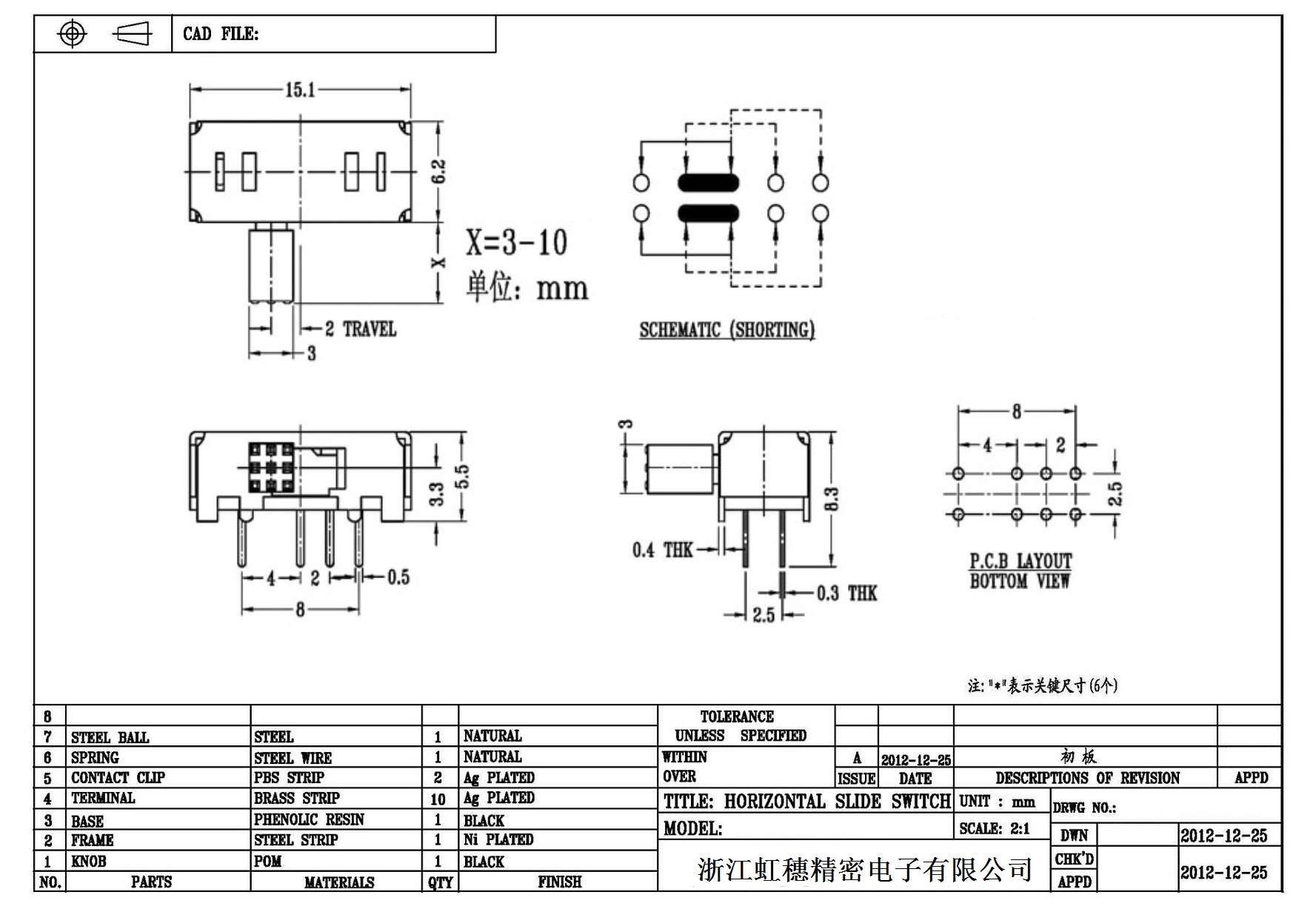 Horizontal toggle switch sidedial/horizontal slide switch technical indicators