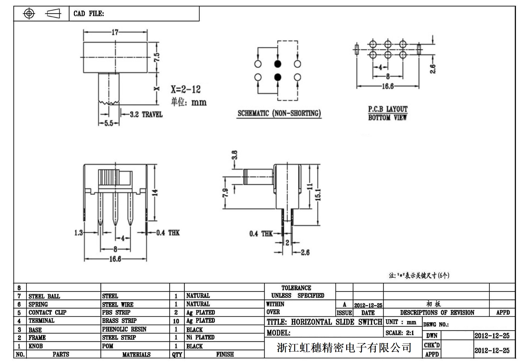 Horizontal toggle switch sidedial/horizontal slide switch technical indicators