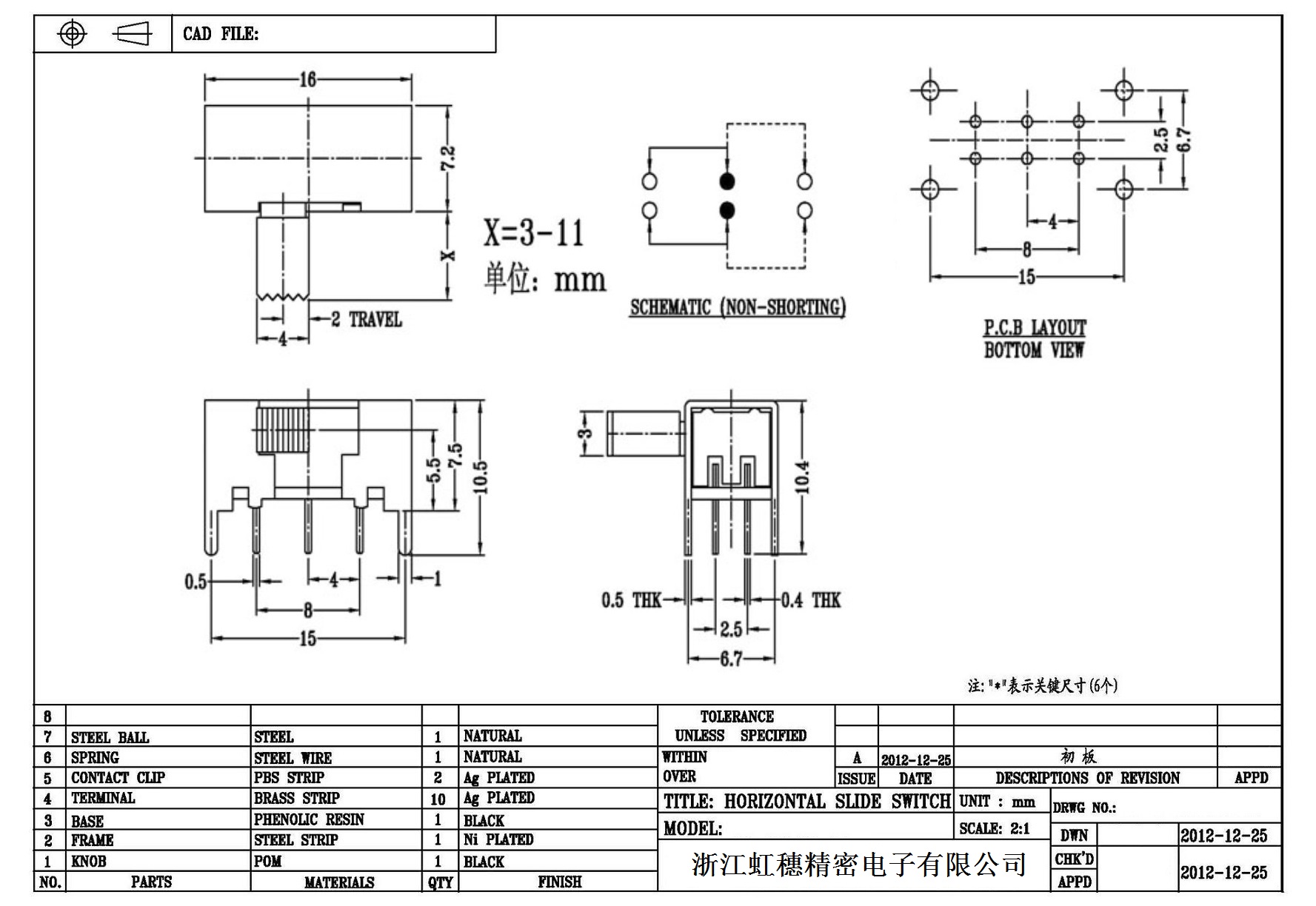 Horizontal toggle switch sidedial/horizontal slide switch technical indicators