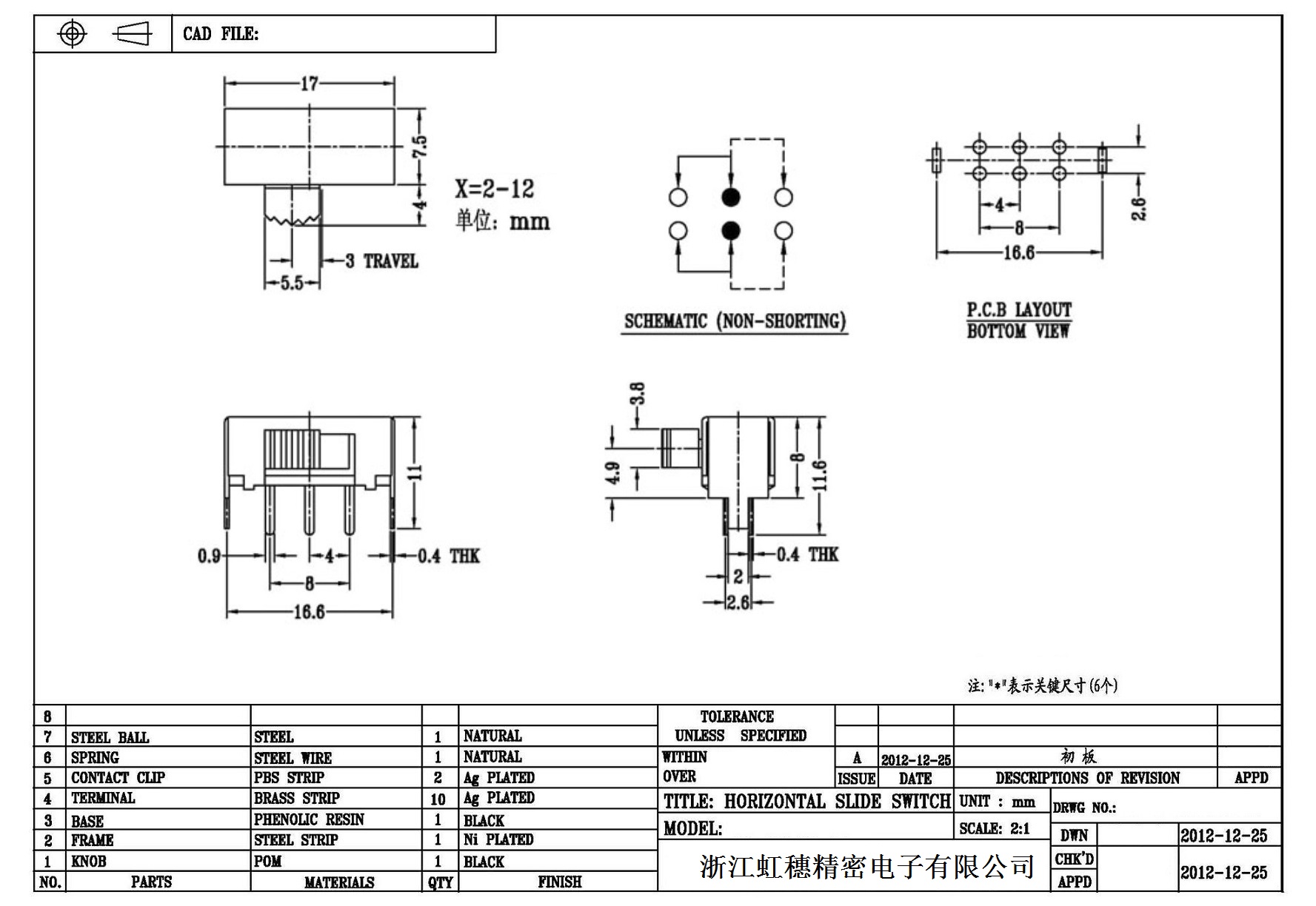 Horizontal toggle switch sidedial/horizontal slide switch technical indicators