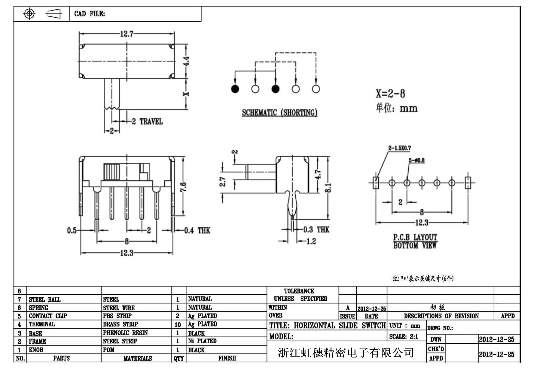 Horizontal toggle switch sidedial/horizontal slide switch technical indicators