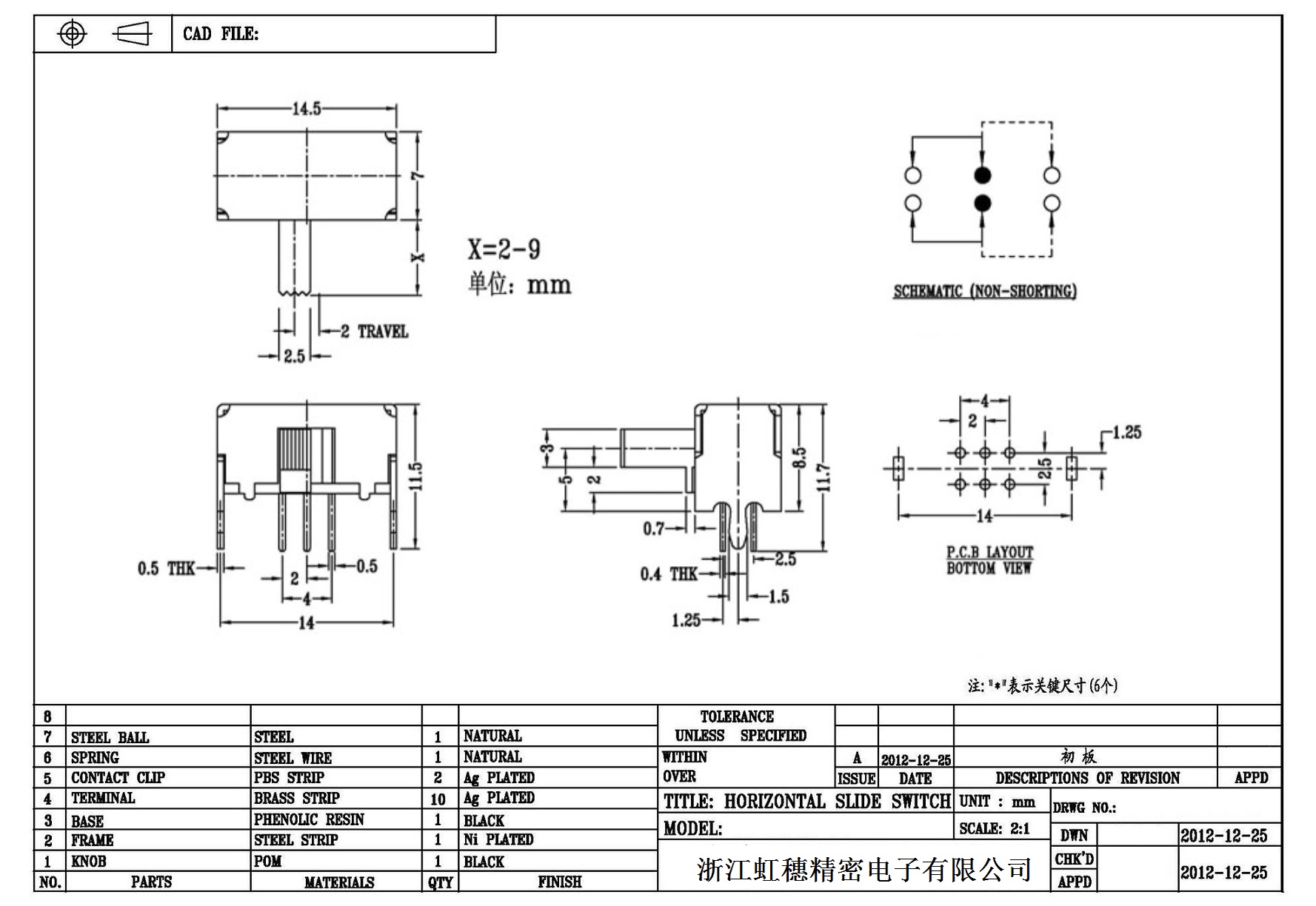 Horizontal toggle switch sidedial/horizontal slide switch technical indicators