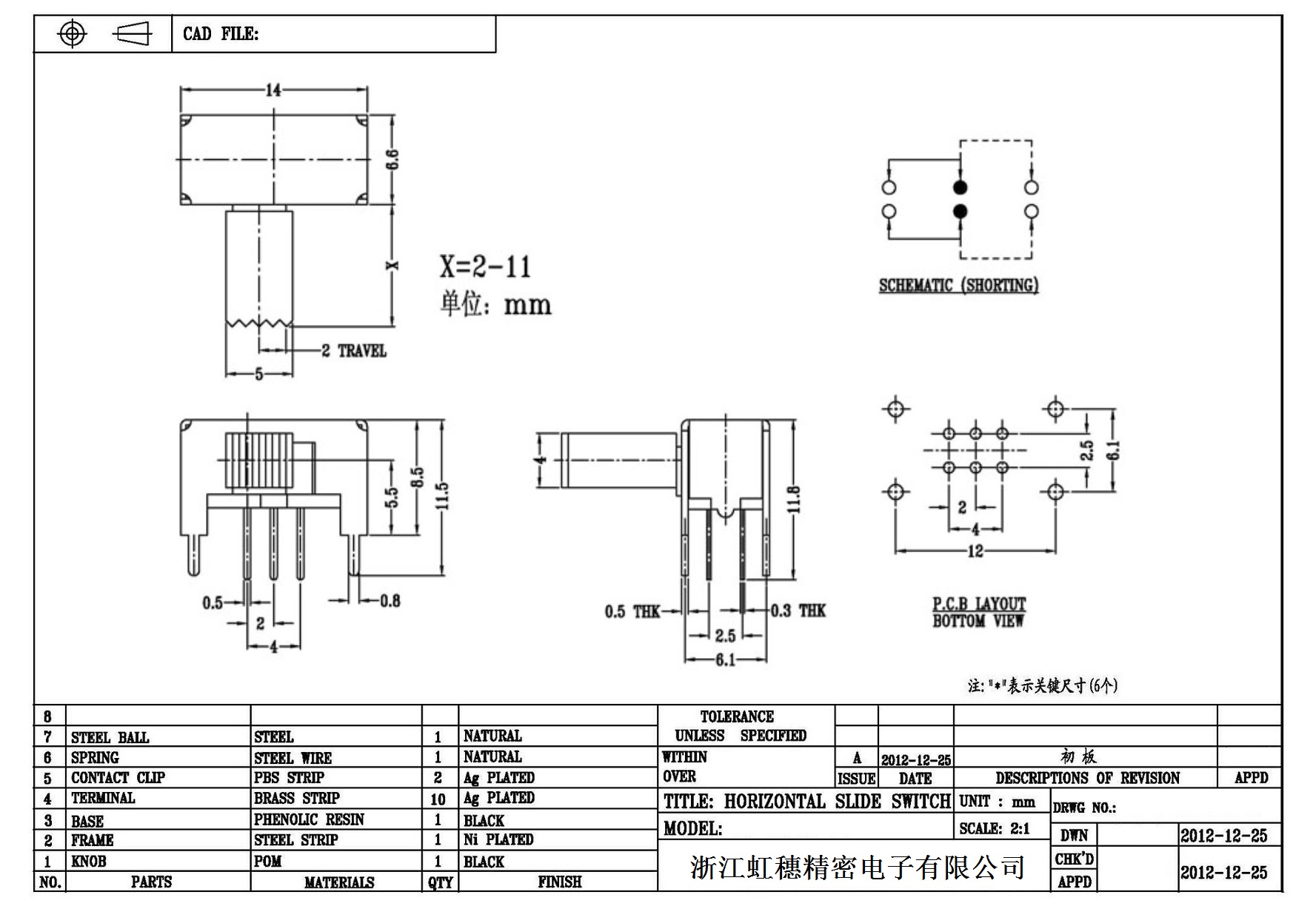 Horizontal toggle switch sidedial/horizontal slide switch technical indicators