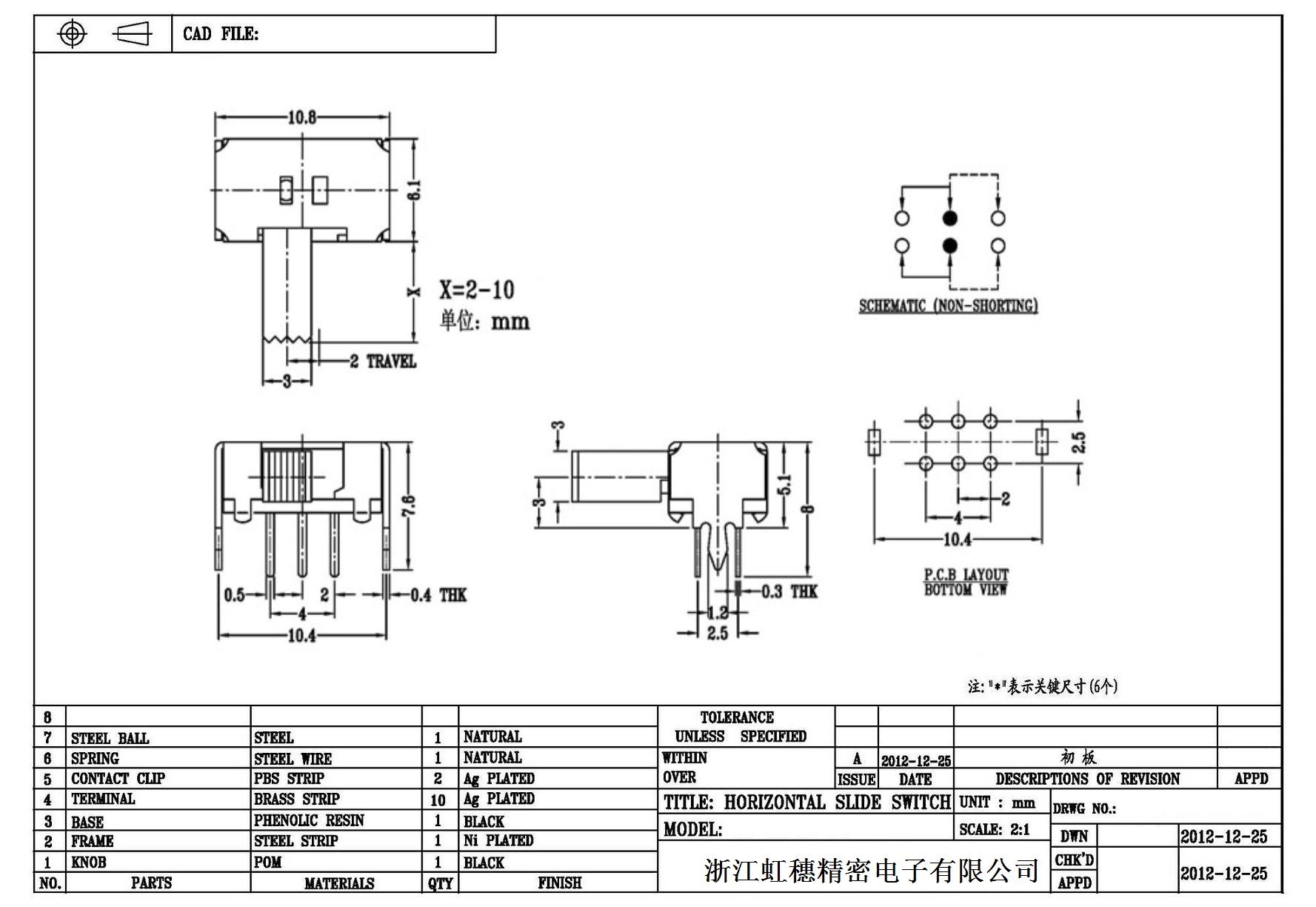 Horizontal toggle switch sidedial/horizontal slide switch technical indicators