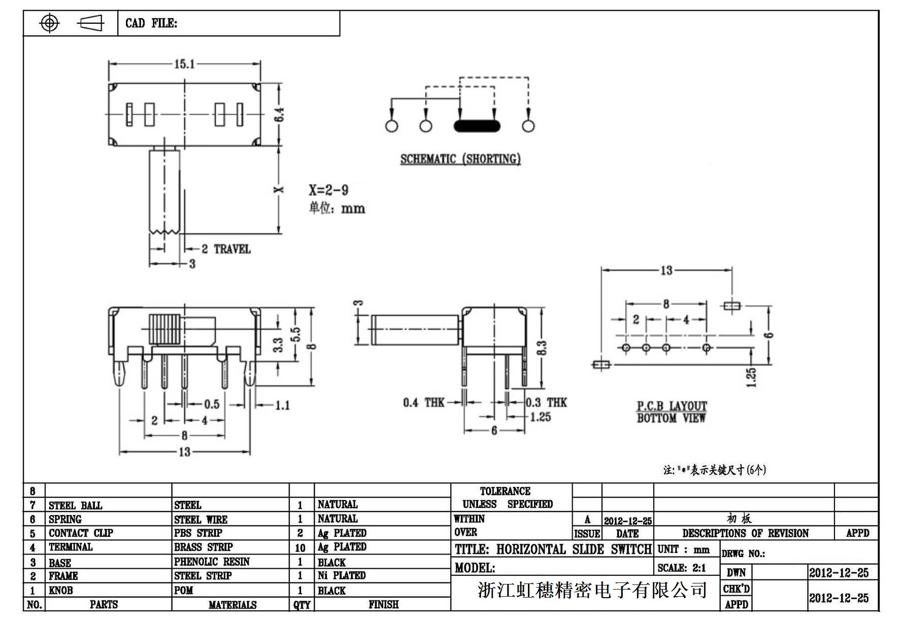 Horizontal toggle switch sidedial/horizontal slide switch technical indicators