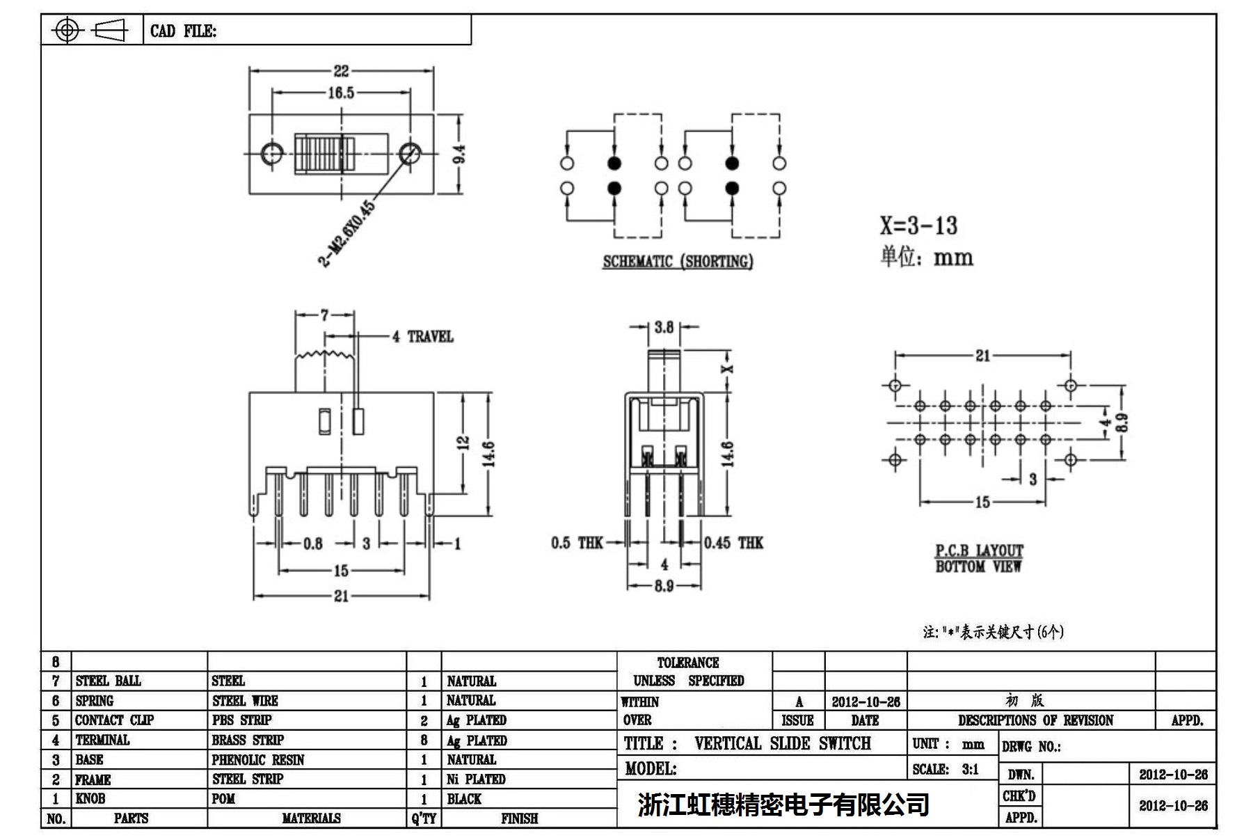 Verticaltoggle switch side dial/ Vertical slide switch technical indicators