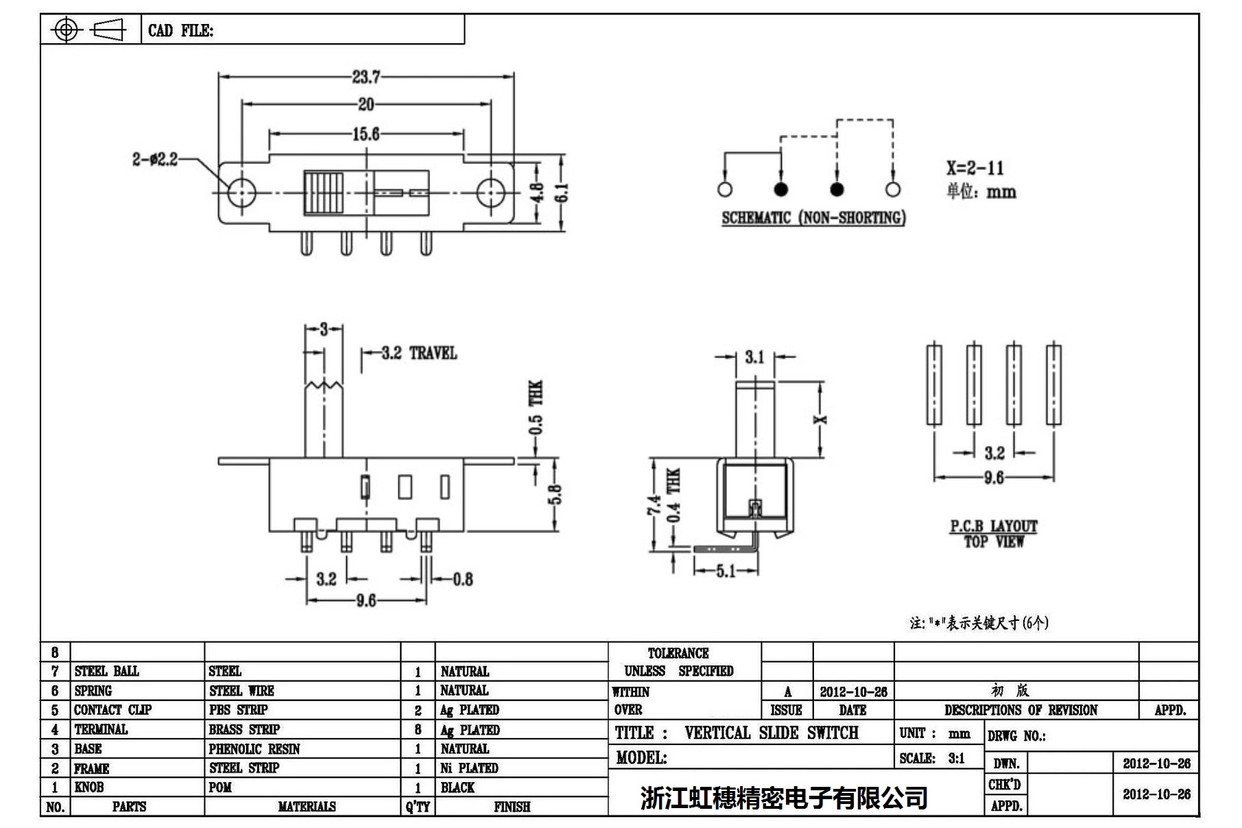 Verticaltoggle switch side dial/ Vertical slide switch technical indicators