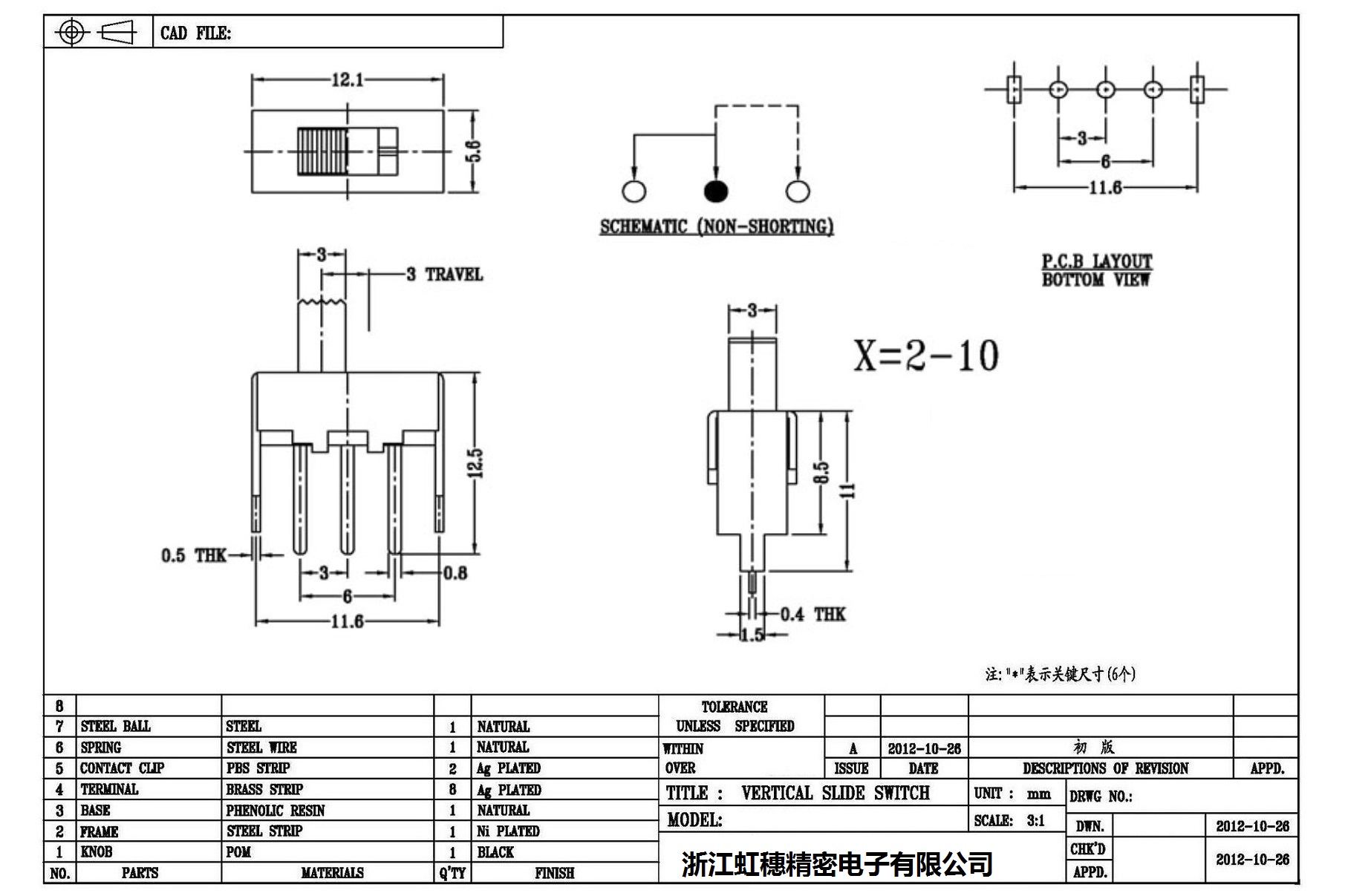 Verticaltoggle switch side dial/ Vertical slide switch technical indicators
