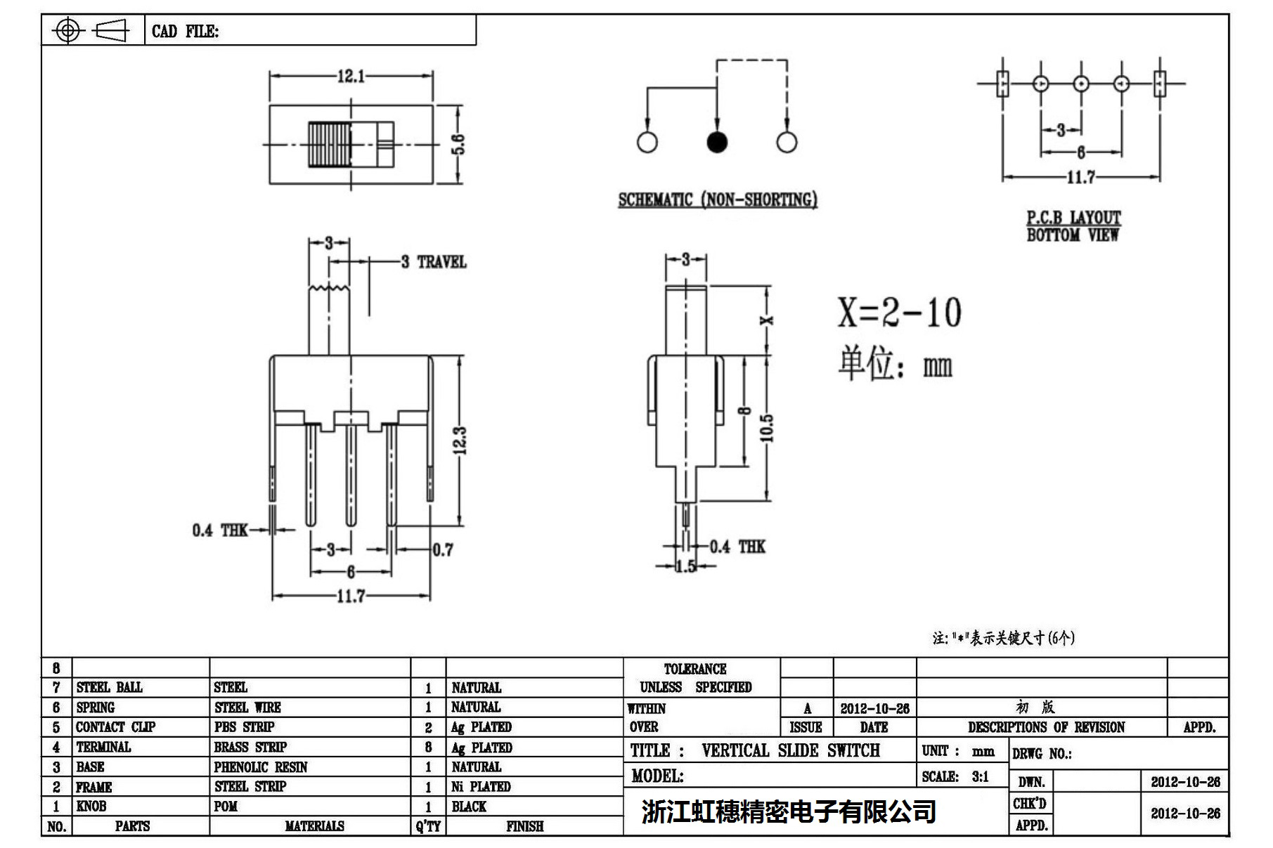 Verticaltoggle switch side dial/ Vertical slide switch technical indicators