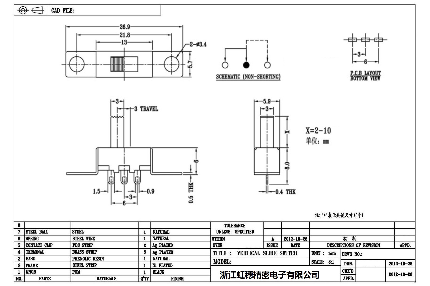 Verticaltoggle switch side dial/ Vertical slide switch technical indicators