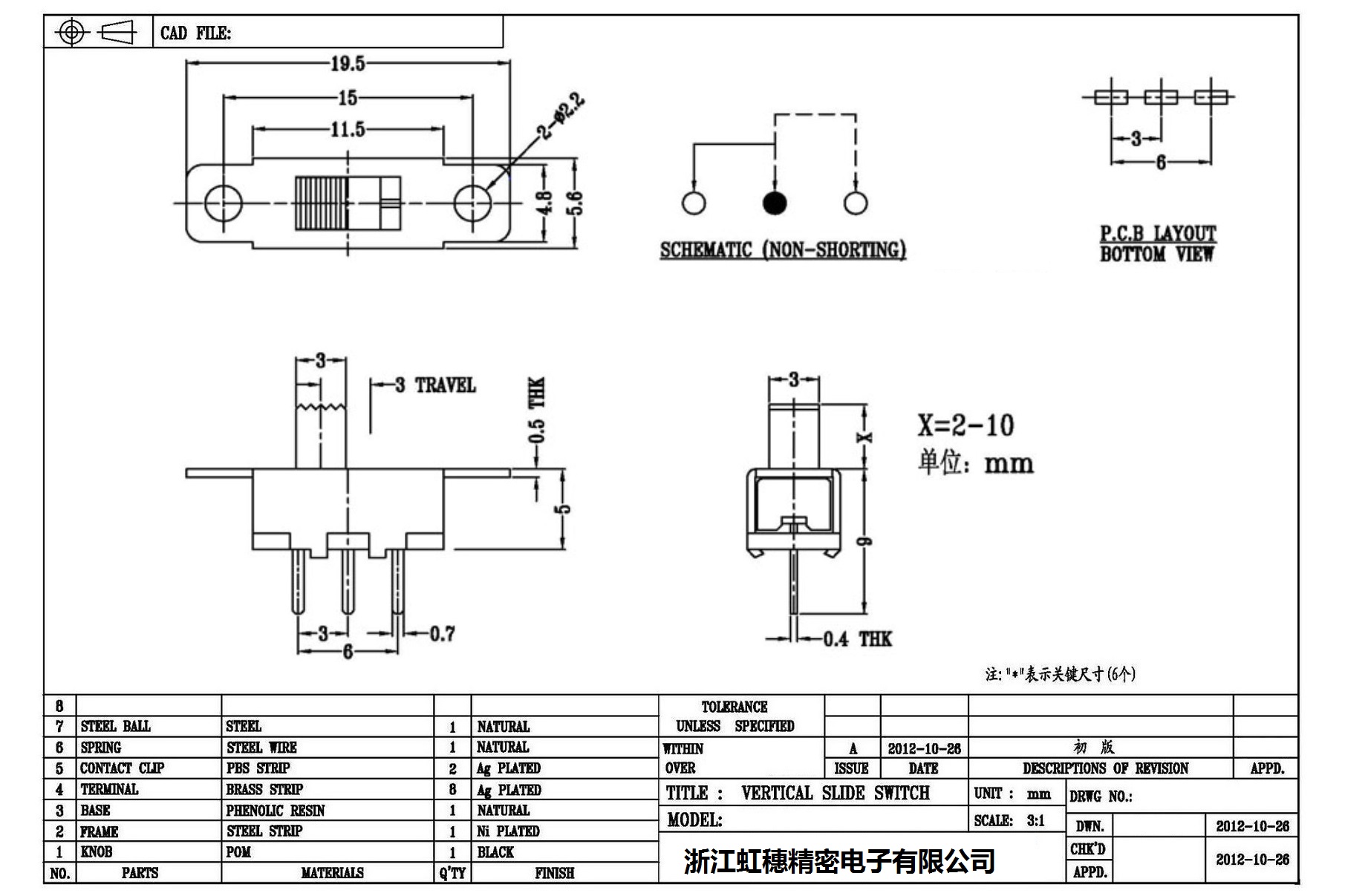 Verticaltoggle switch side dial/ Vertical slide switch technical indicators