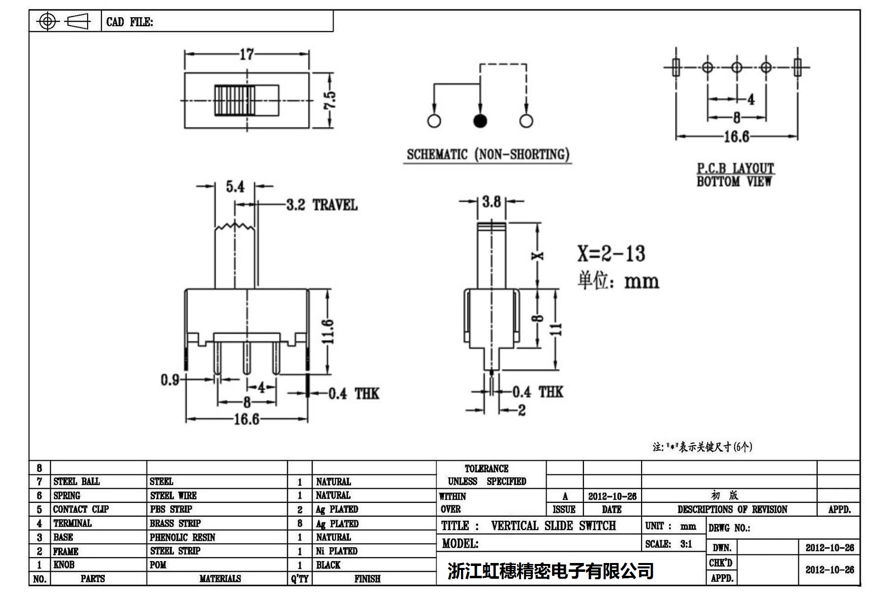 Verticaltoggle switch side dial/ Vertical slide switch technical indicators