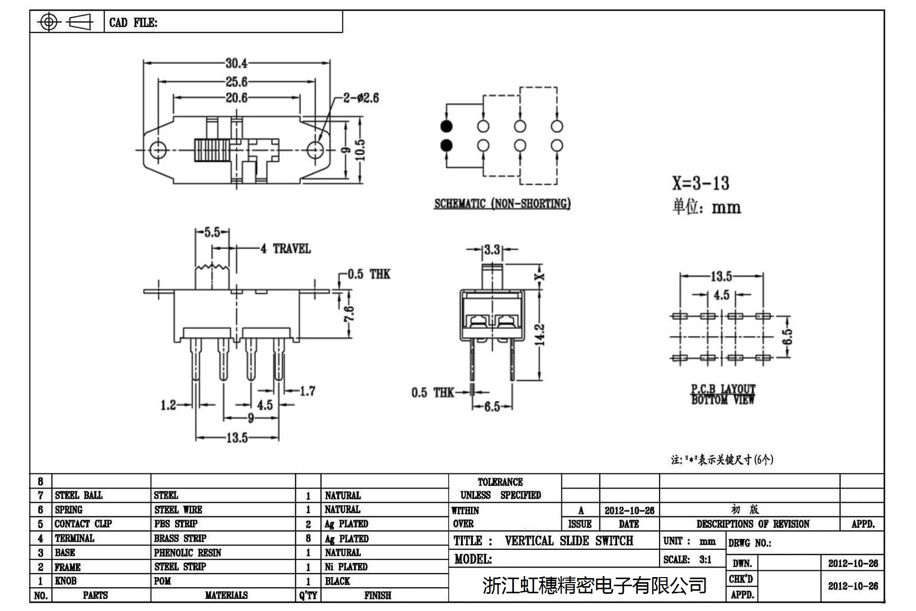 Verticaltoggle switch side dial/ Vertical slide switch technical indicators