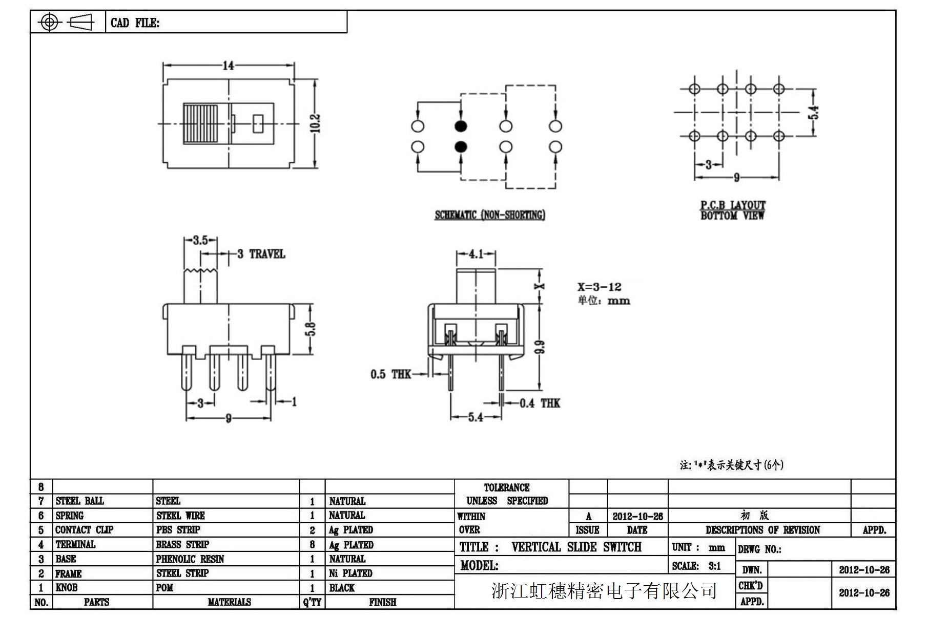 Verticaltoggle switch side dial/ Vertical slide switch technical indicators
