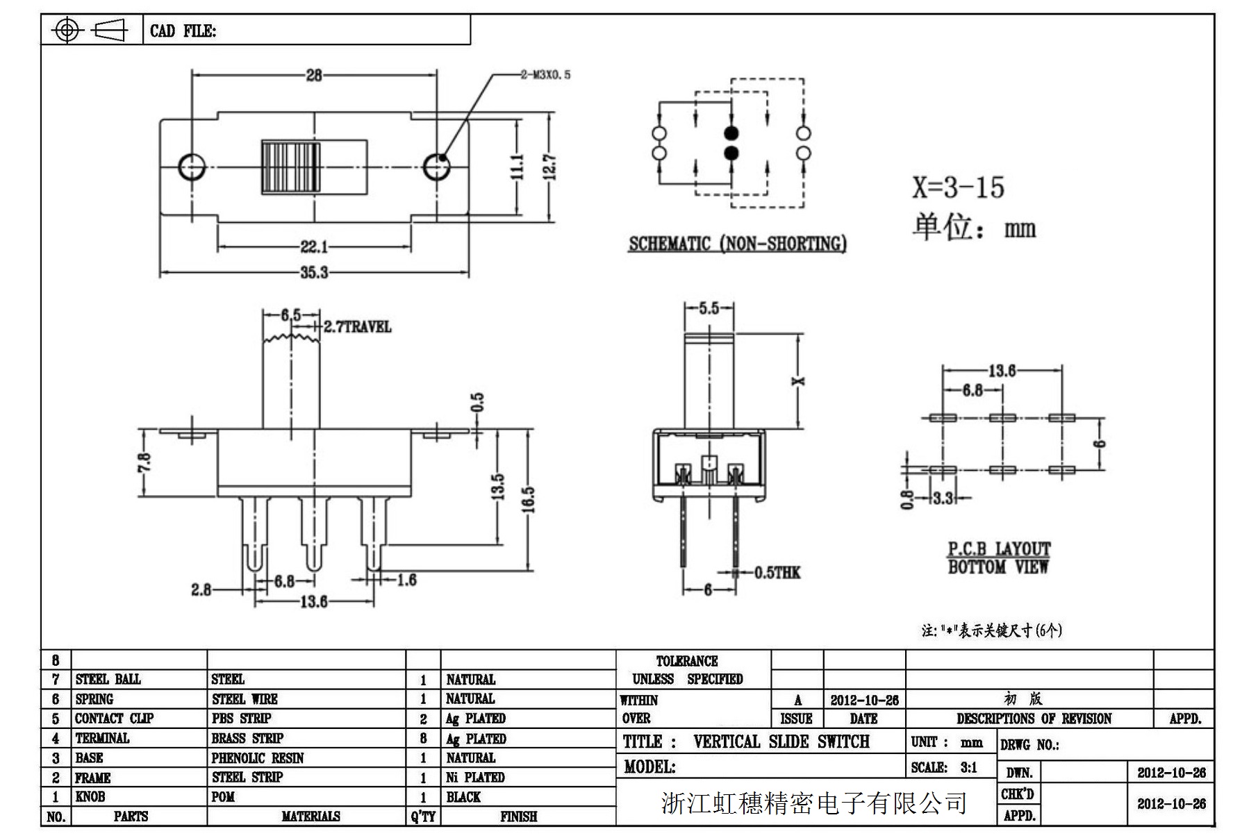 Verticaltoggle switch side dial/ Vertical slide switch technical indicators