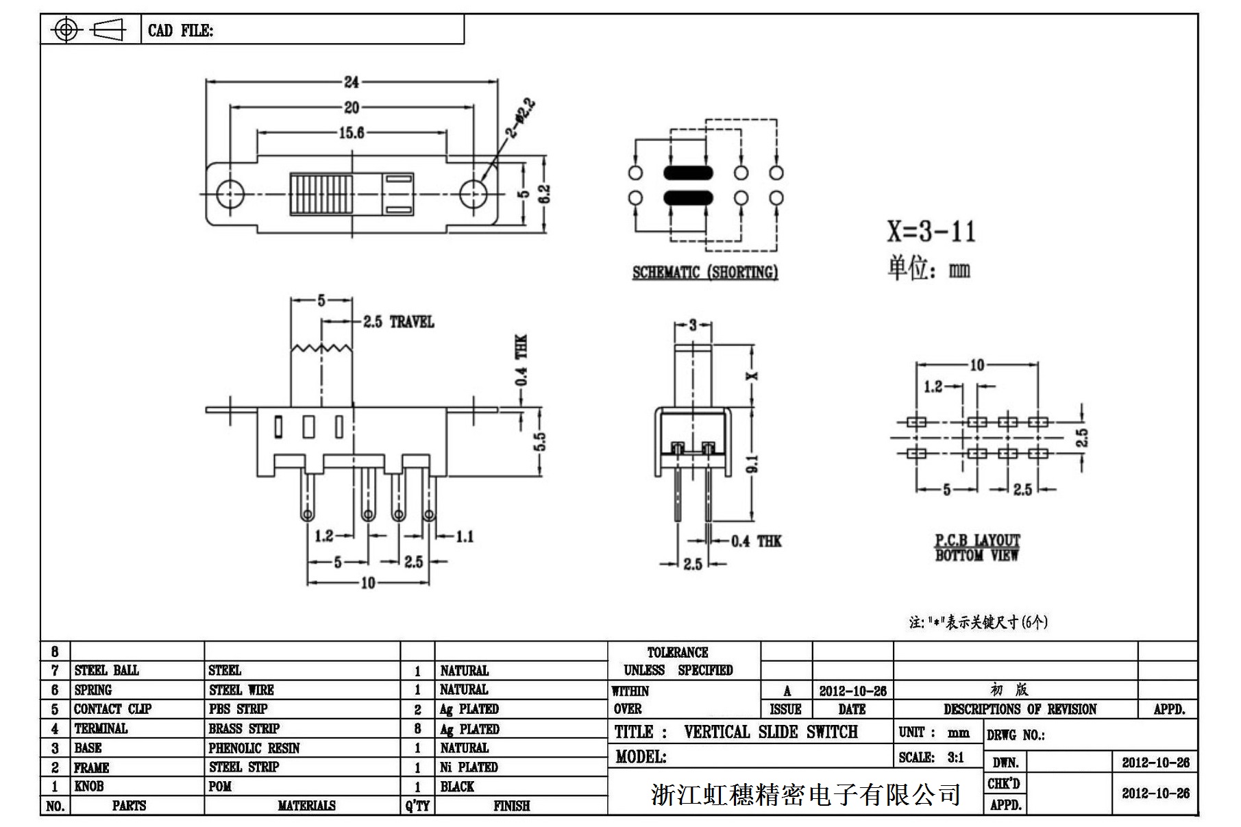 Verticaltoggle switch side dial/ Vertical slide switch technical indicators
